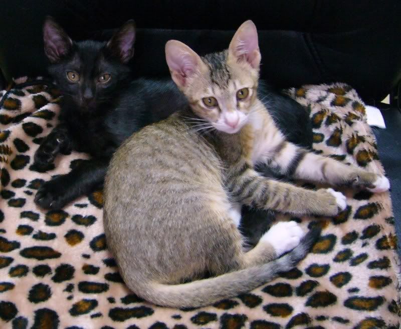 We are both about 3 months of age, healthy and playful. About our personalities: Steve is a bit more outgoing than I am. I am still a bit shy but gradually coming around. Our favorite activities include: eating, sleeping and playing. We love playing with all kinds of toys like ping pong balls, fluffy balls, paper balls, and especially those things you humans like to swing around on sticks and strings. Yeah, we love those ones. But we also love playing with each other, chasing easy other, stalking each other, playing hide and seek, and practicing kitty kung fu. So, we really hope that we can be adopted together. If that is not possible and you would like to adopt one of us, we hope that you have at least one other feline at home that we can befriend.
