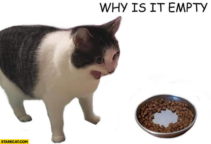 What if there was a “bottomless cat food bowl” that consists of a bunch of cat food grains glued to the bottom of the food bowl so the cat thinks it’s never empty and so you wouldn’t have a bunch of wasted food grains around the edge?