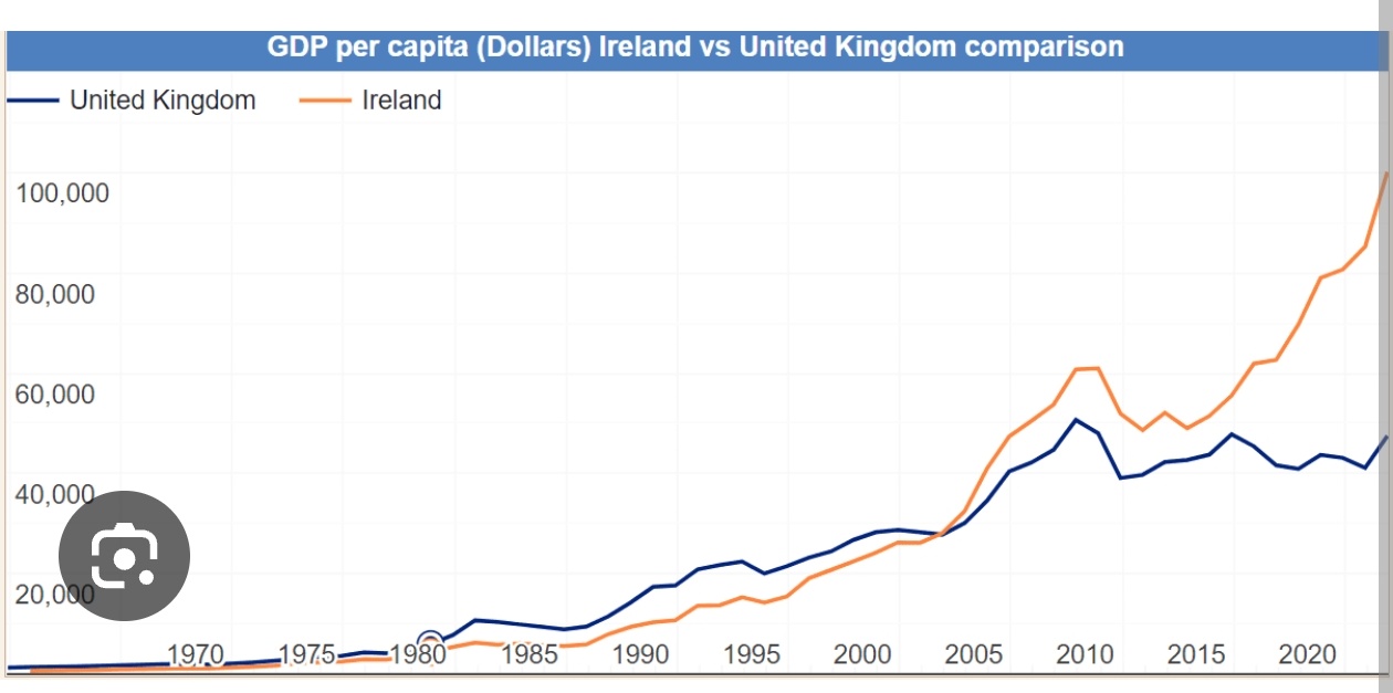 Speaking of evidence Ireland’s GDP is projected to grow 0.2% in 2026 while Britain’s is projected to grow 1.2%