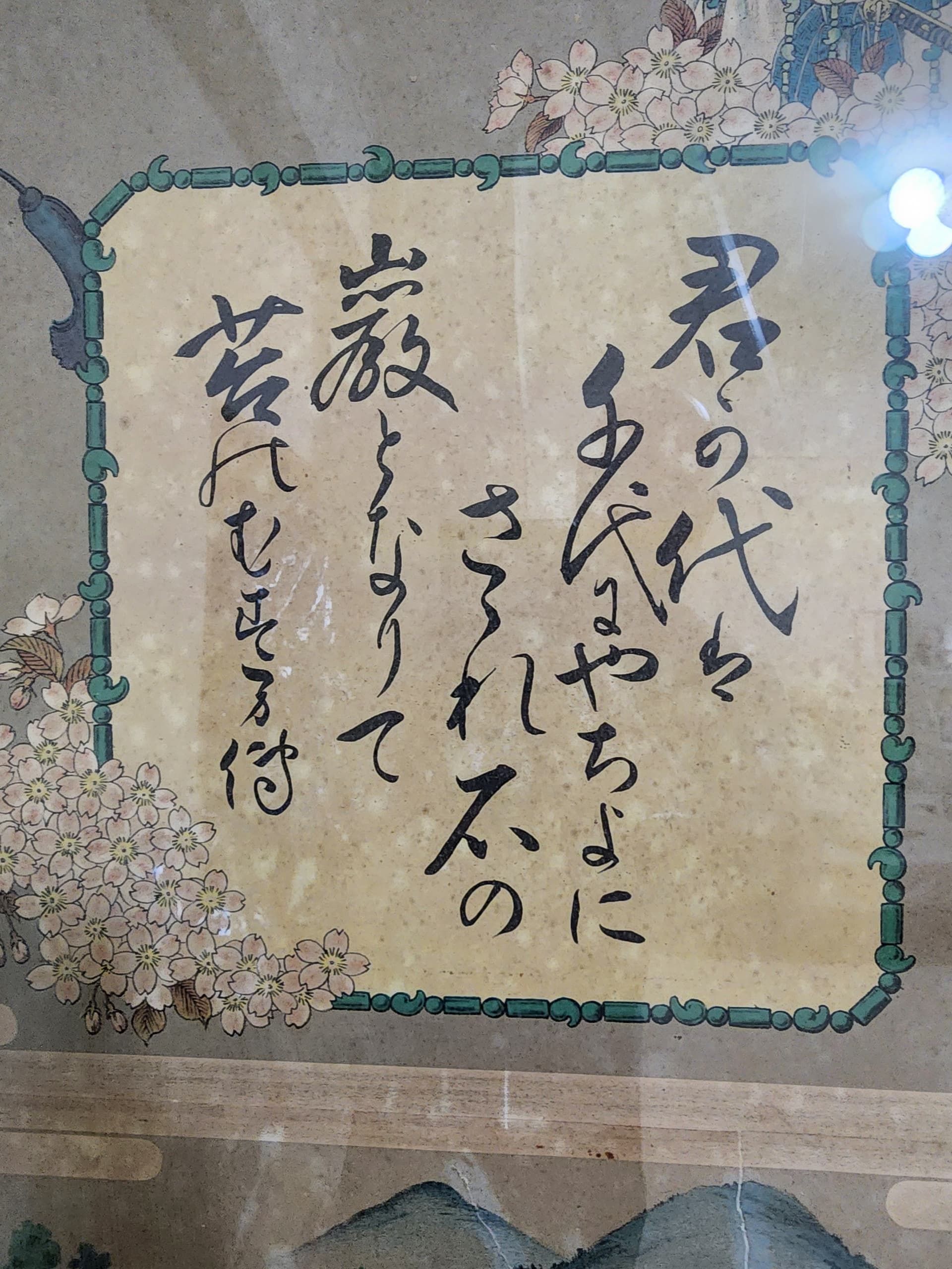 Does anyone know whether the calligraphy is Japanese or Chinese language and what it says or what the scene is about?