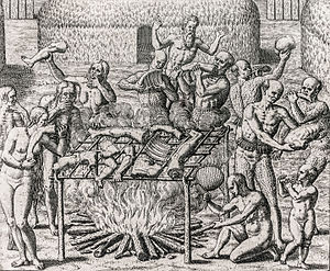 Well, back in the old days, some aboriginal tribes were known for wacking any foreigner who showed up on these shores. Chinese, Japanese, German, American, and anyone else who was unlucky enough to be shipwrecked. It pissed off quite of few. Not sure if anyone was eating humans though.