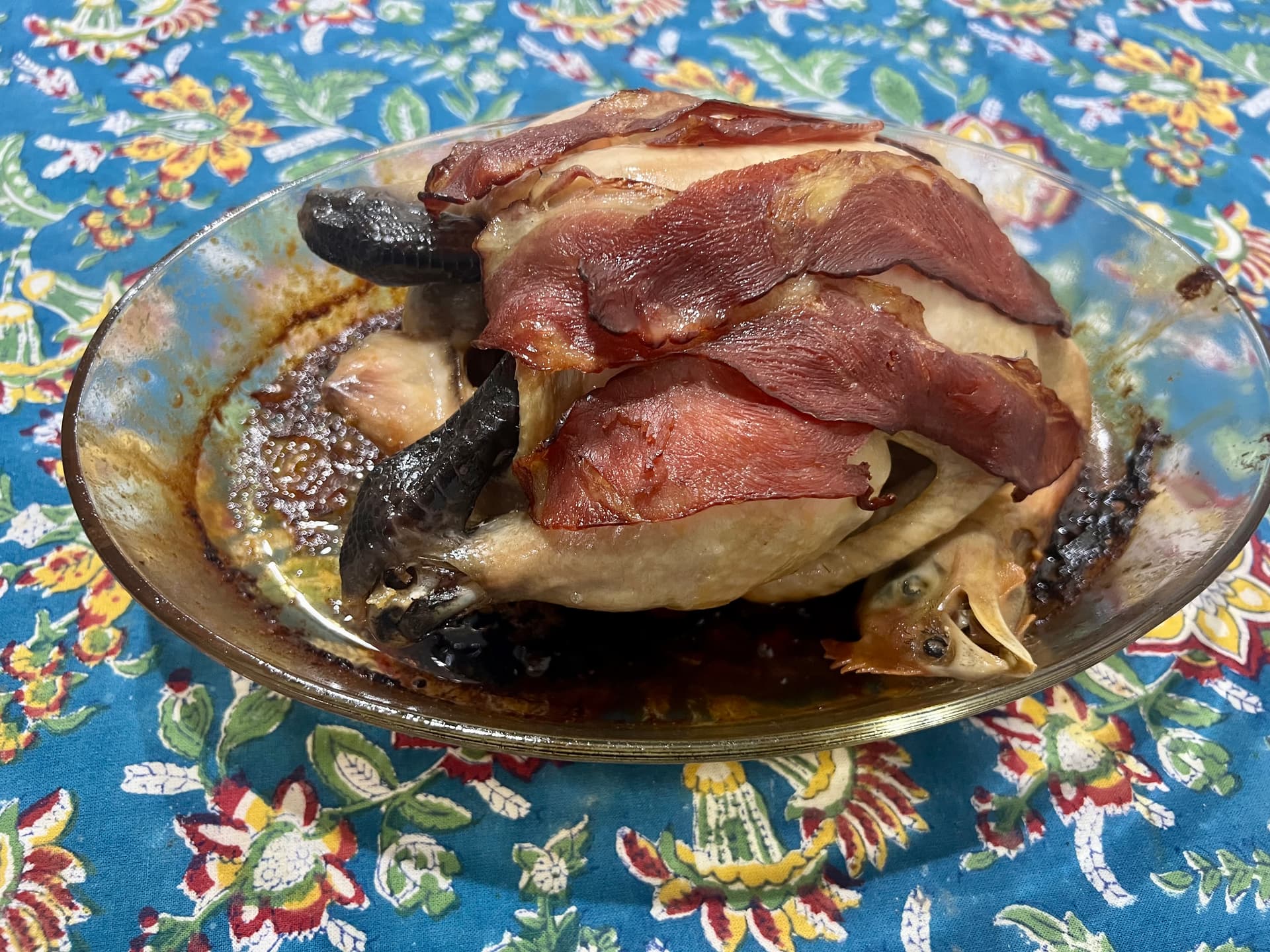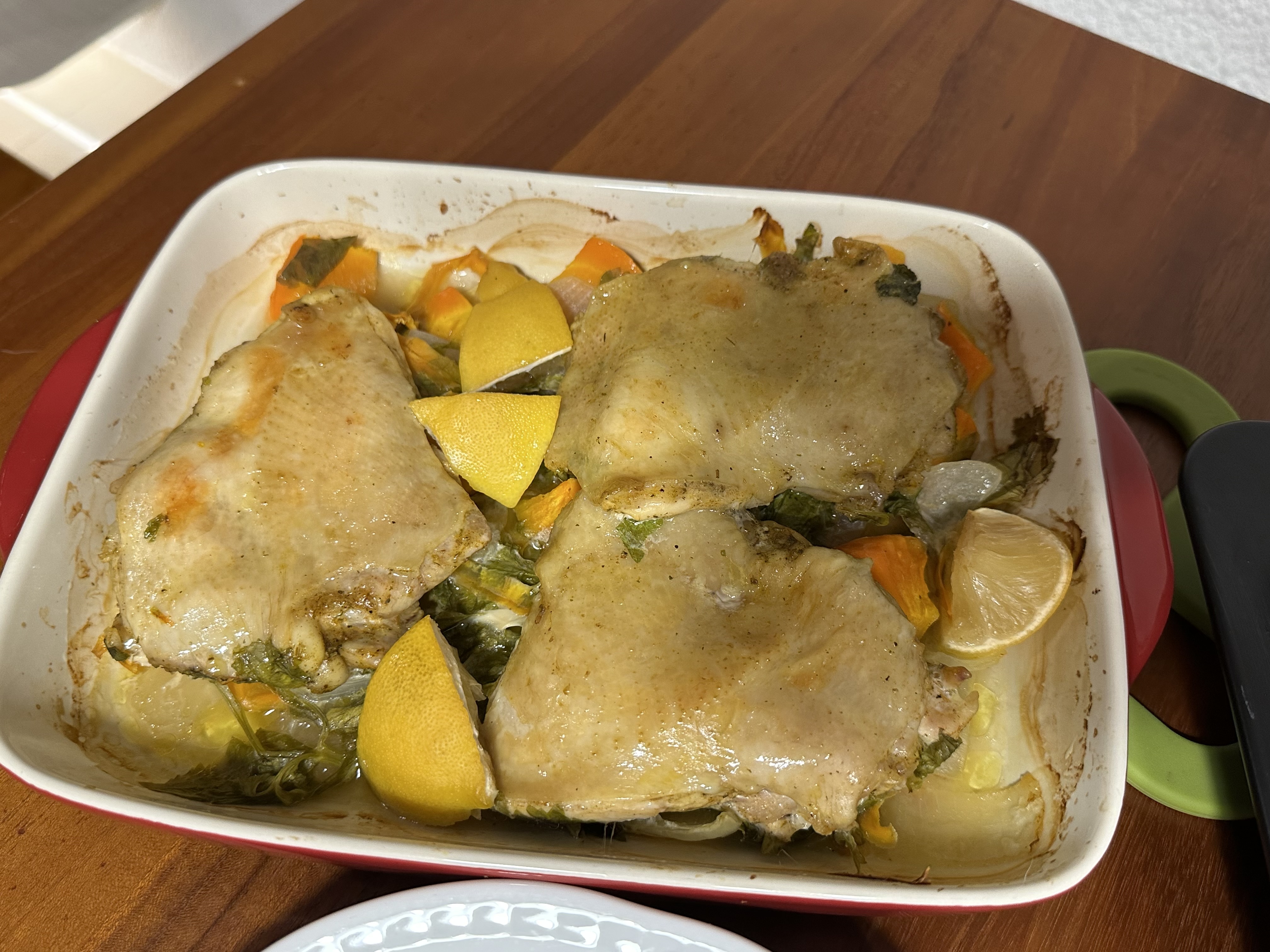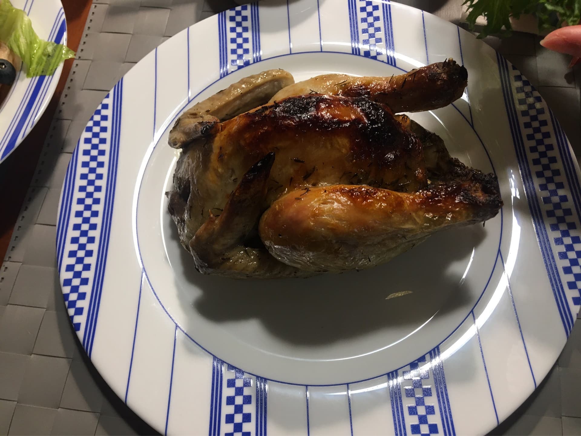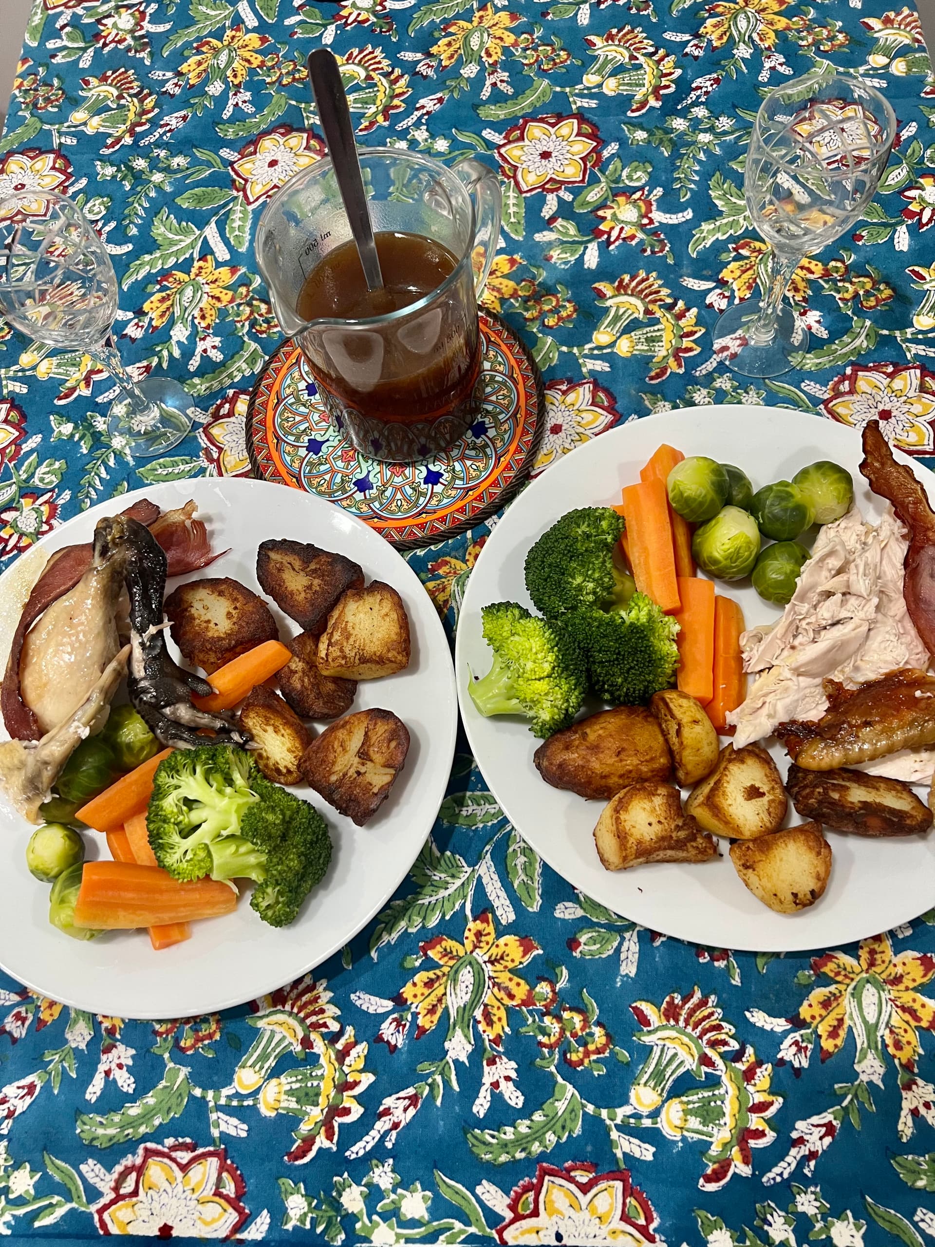 I’m doing Chicken roasted, cavity onion. Garlic, ginger rub skin with salt and sesame oil. Rest traditional glazed carrots, roast potatoes, broccoli, Brussels and Yorkshire puds, chicken gravy, no stuffing.
