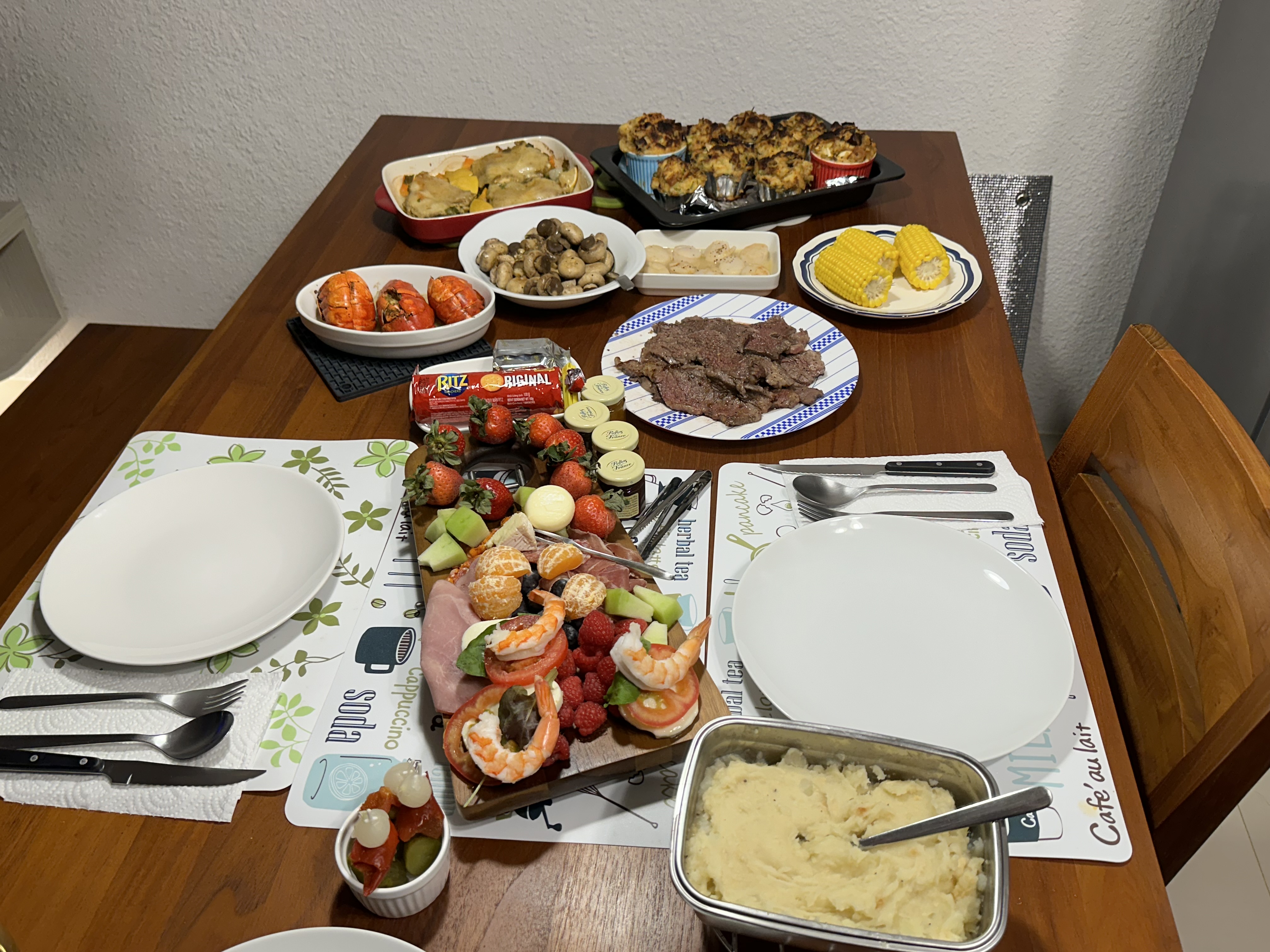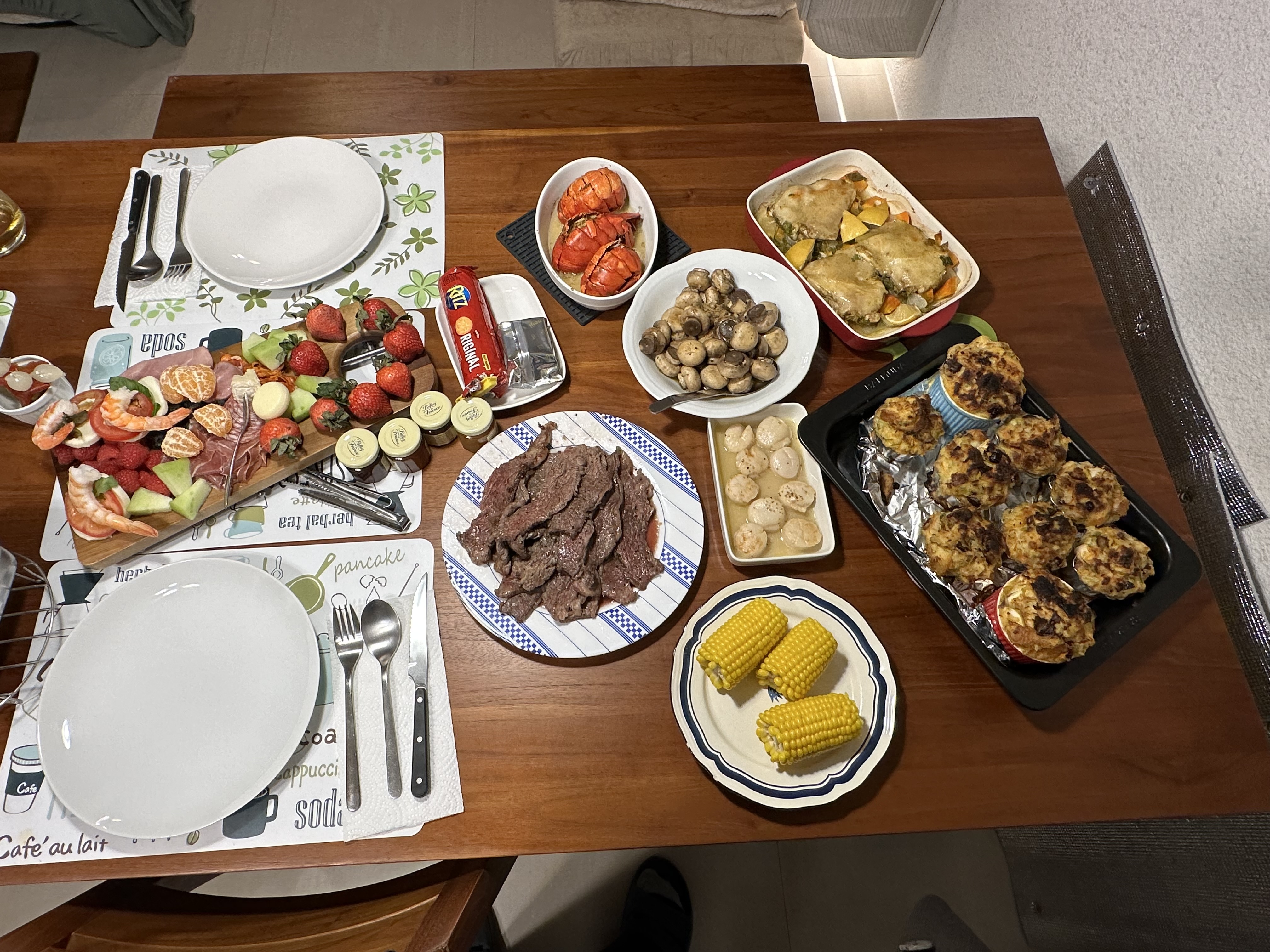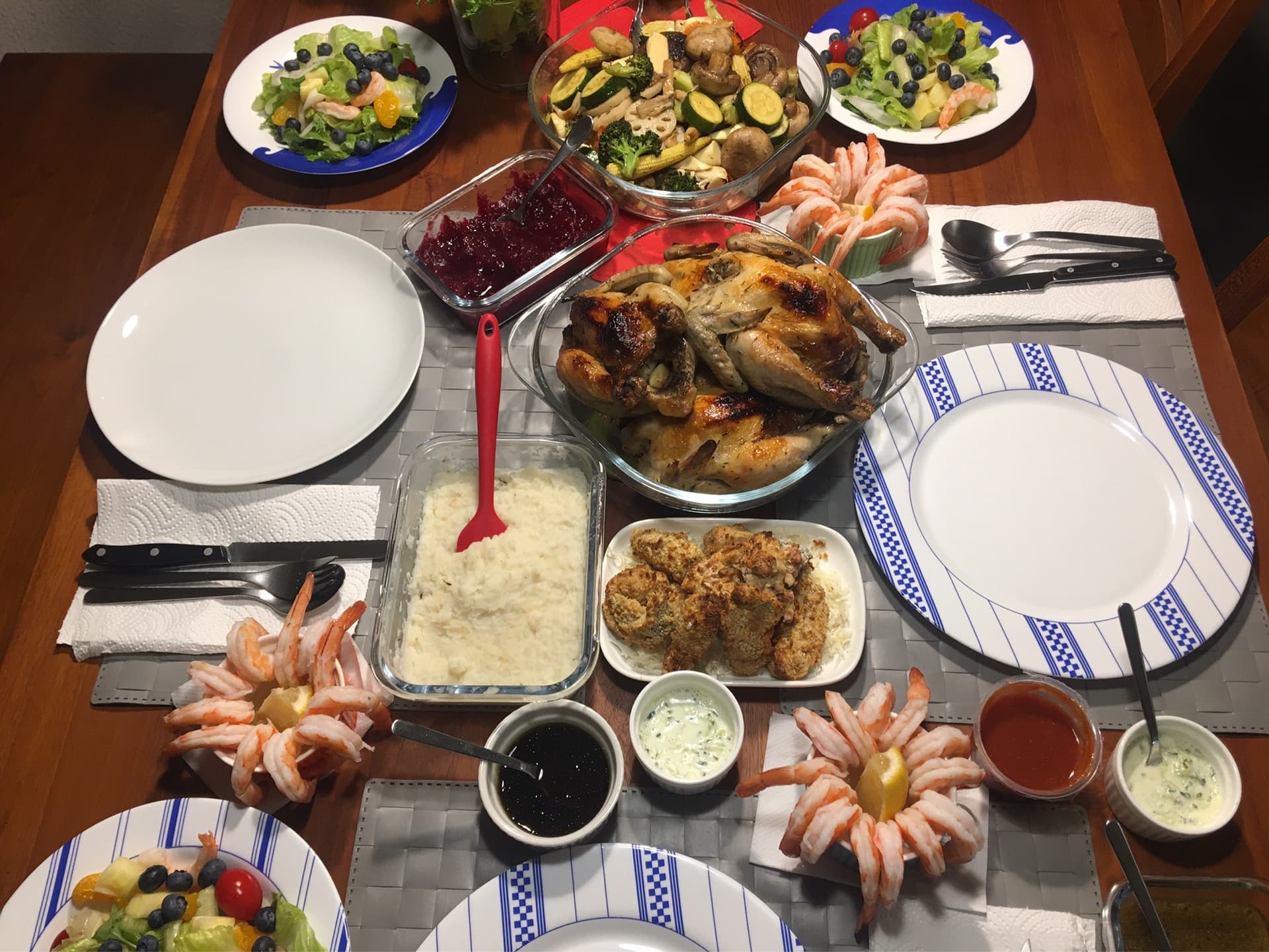 And dinner, to much wine I forgot Yorkshire pudding and gf forgot the shrimp for prawn cocktail, other than that nice dinner.