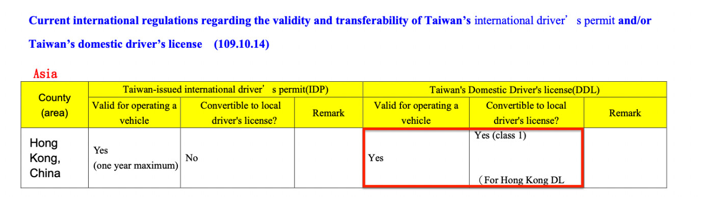So I went today. Apparently, your Hong Kong driver’s license needs to be notarized by the Taiwan Economic and Cultural Office in Hong Kong and not the Hong Kong Transport Department. Its laughable considering they aren’t even the issuer. The Ministry of Foreign Affairs won’t do shit here in Taiwan either. So I called the Taipei Motor Vehicle Office and they said I can try contacting the TECO HK office and see if they are willing to notorize over the web. He mentioned someone in our situation did this before. So right now I am crossing my fingers.