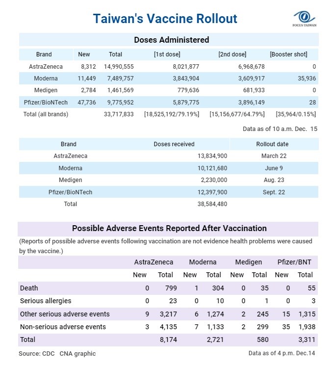 The Taiwan FDA also provide a very helpful COVID-19 vaccine adverse event notification summary report every week for the public, where you can see the types and numbers of COVID-19 vaccine adverse events in Taiwan.