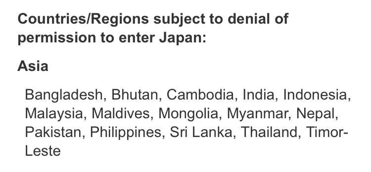 Surprised South Korea isn’t on there considering how much animosity there is between the two. Half the time these COVID banned lists are just an excuse to settle unrelated, petty diplomatic grudges.