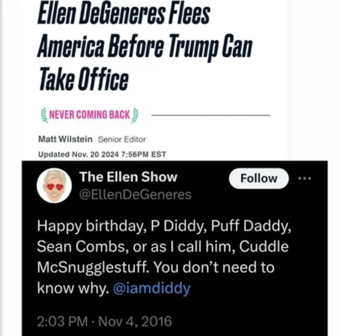 Ellen seems to have a closer connection to Diddy, having had him on the show many times, and having him whisper something about ‘tapes’ into Ellen’s ear.