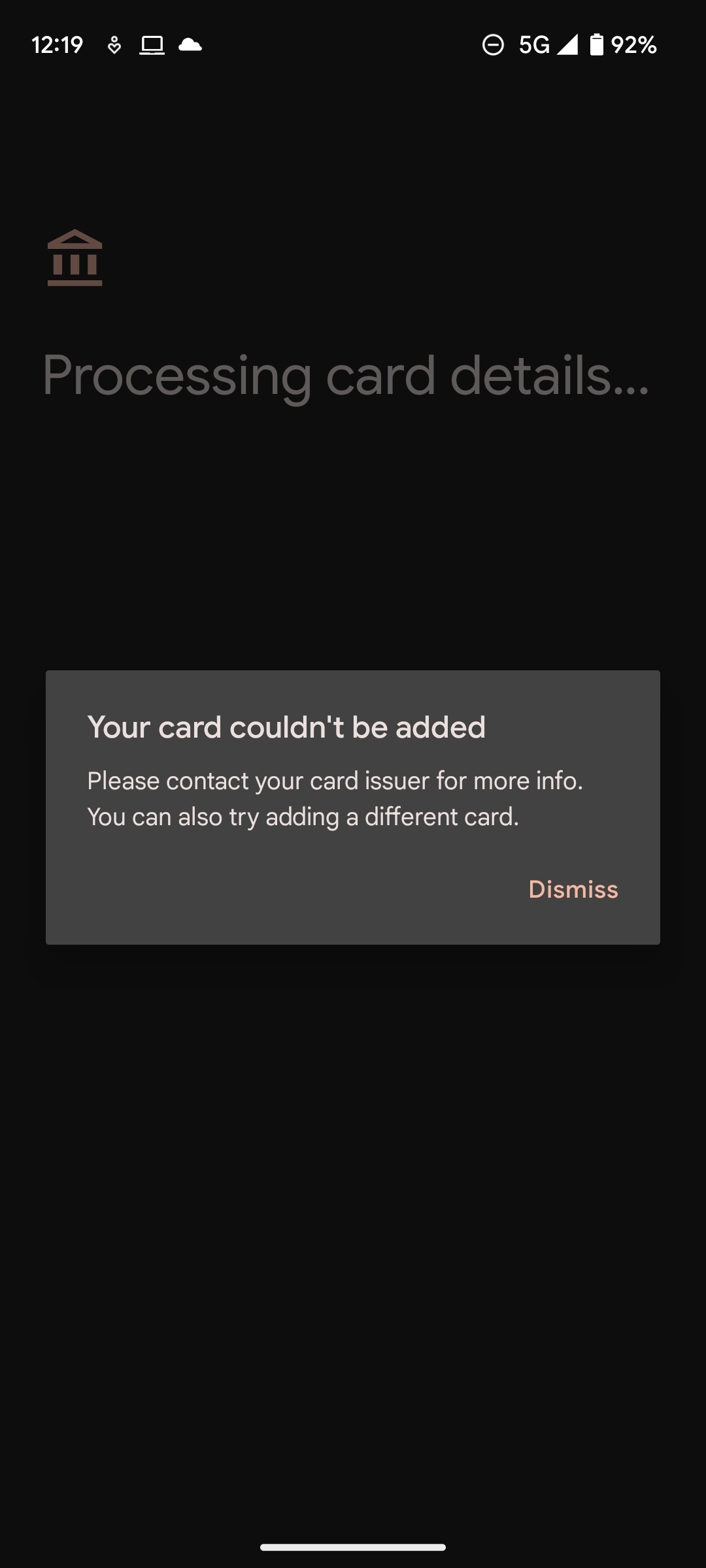 Google wallet will not let you add a card to your wallet, if you try it will keep giving you error messages.