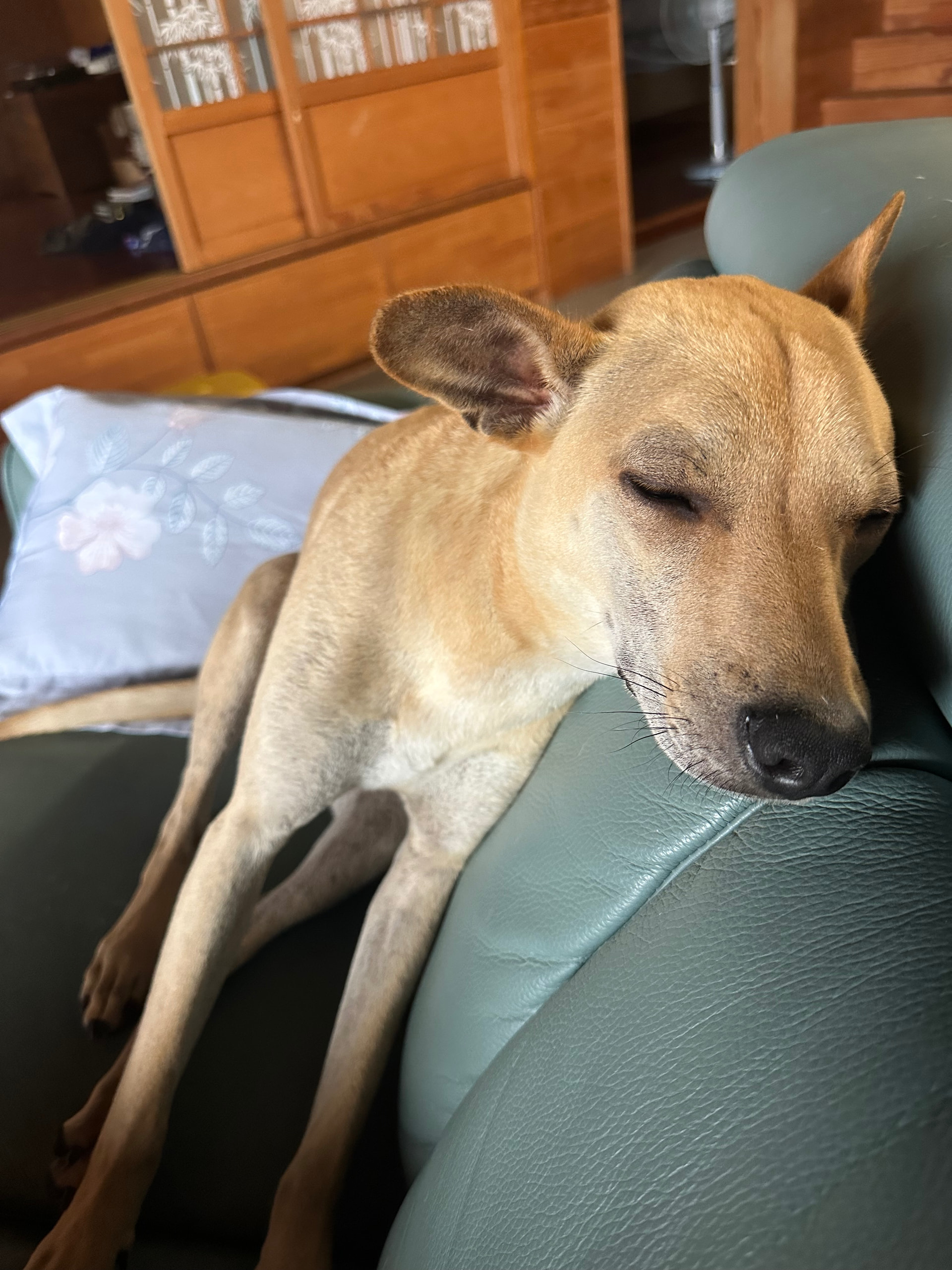 So we adopted my wife’s family’s factory dog as he’s 12 and his hips are giving out. Lucy has ten times the energy but Lucky pretty much sleeps all day.