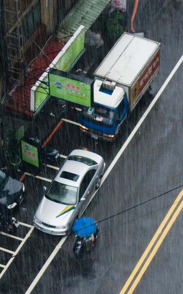 I just drove back from the meatpacking plant in Guanyin. That was some HEAVY rain. Pillocks driving 100kph in 3-metre visibility, aquaplaning merrily from lane to lane, tailgating… lovely stuff.