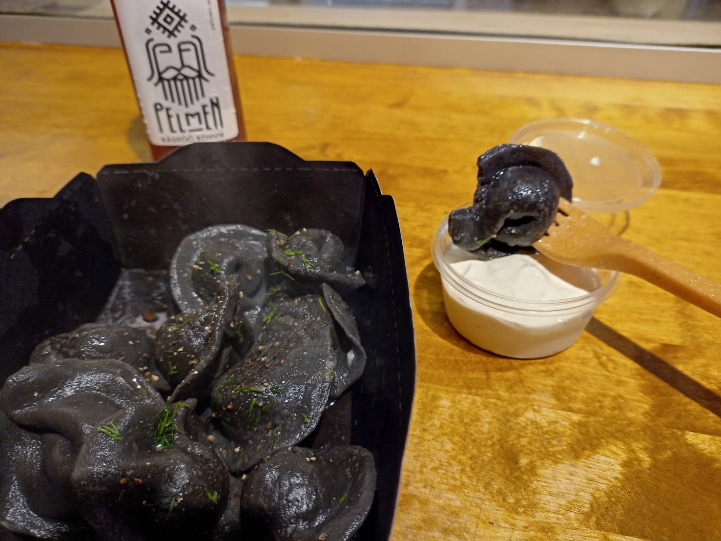 I thought it was squid ink, like the pasta. As a side note about Pasta, quite few young people from Italy (I see quite a few in Northern EU too) working in the markets food outlets so some decent pastas in Estonia/Baltics.