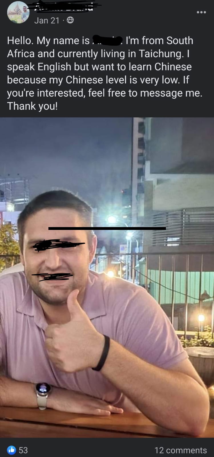 I don’t think I’ve skipped anyone. The people I see most often right now are other westernized folks here, most of them foreigners like myself. To be honest, I used to have a few good foreigner friends but they all left Taiwan in the past couple of years. I started to feel a bit jaded in investing in those friendships, especially since most foreigners I meet here do not intend on staying here long term.