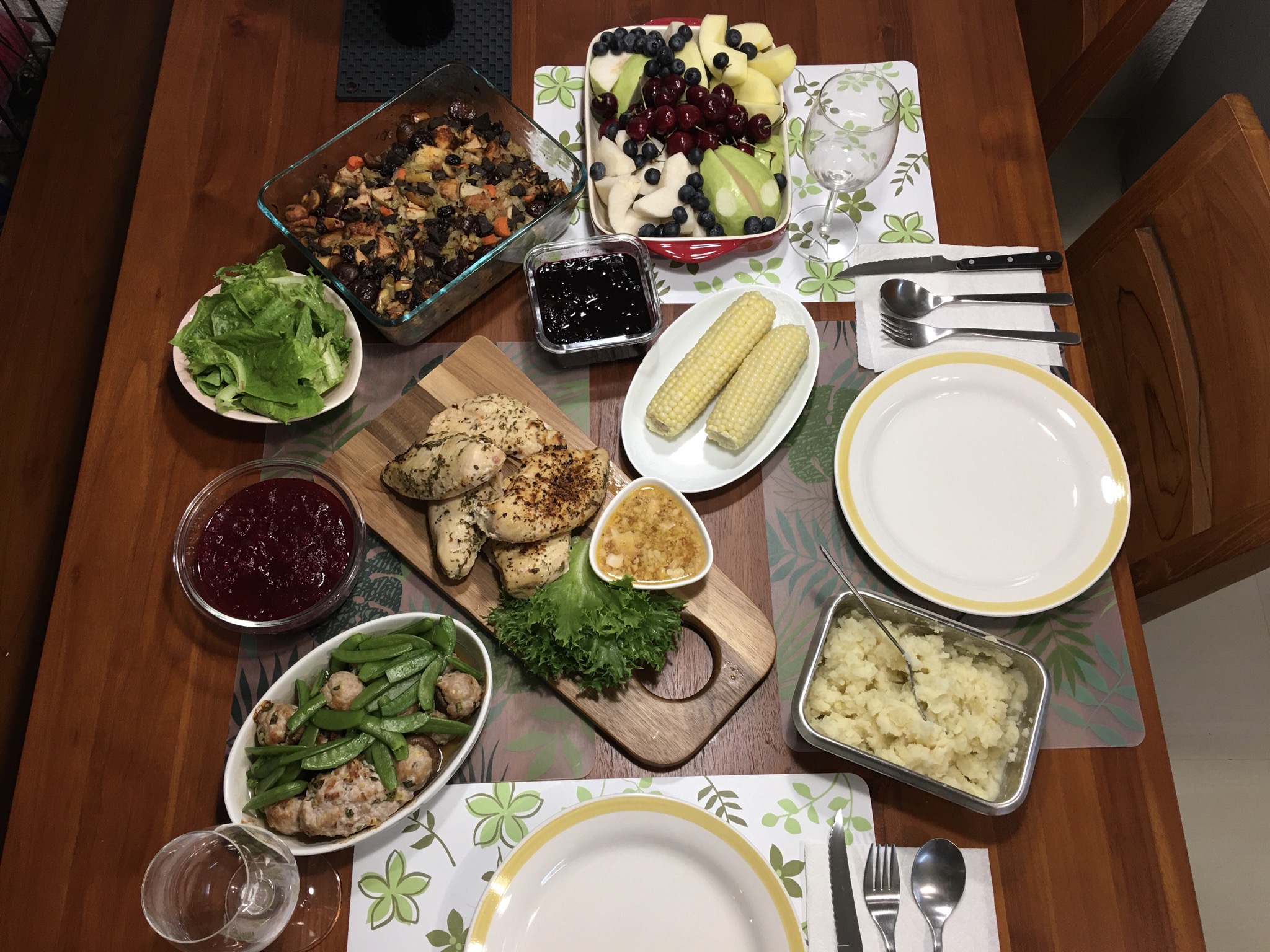 I had a small turkey (The person that got it called it a Chicken so that what I expected) from a local cafe to our house with cranberry sauce and mash in glass bottle (never seen this in glass jar for take away). Sides of Polenta, fried rice, white wine, guava juice with vodka , grapes and Taiwan bangers. Lots of food for four s at my home. (Christmas Eve meal)