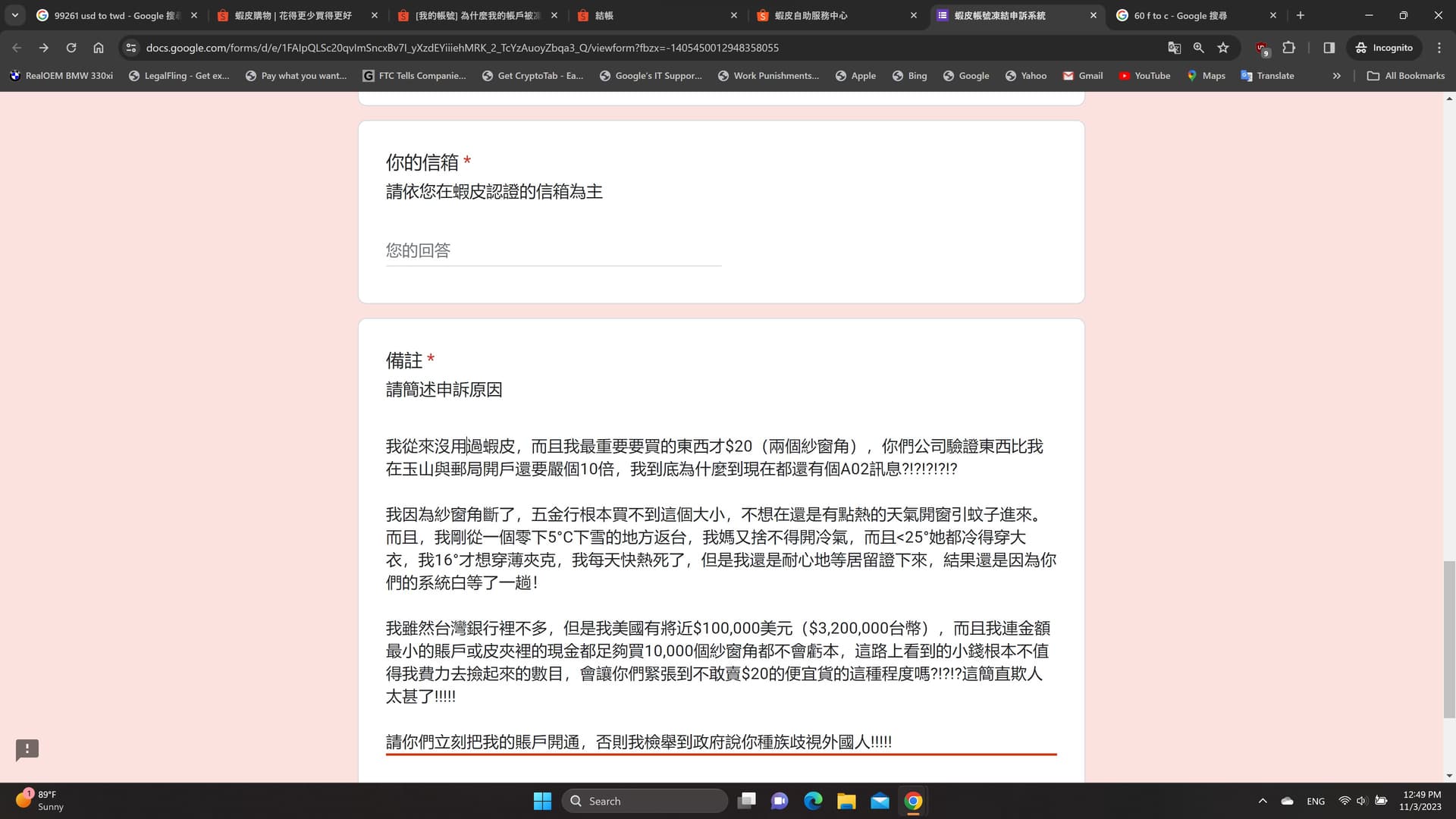 Please unfreeze my account immediately, otherwise Iâll report you to the government for racial discrimination against foreigners!!!