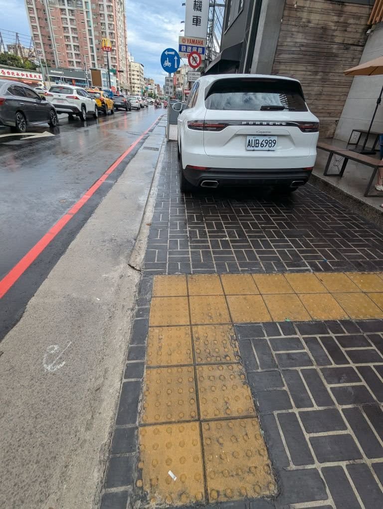 Taichung sidewalk. This spot I know. This is a new sidewalk, only a couple months old. Often have cars illegally parked here next to the hotpot restaurant, WanKe…