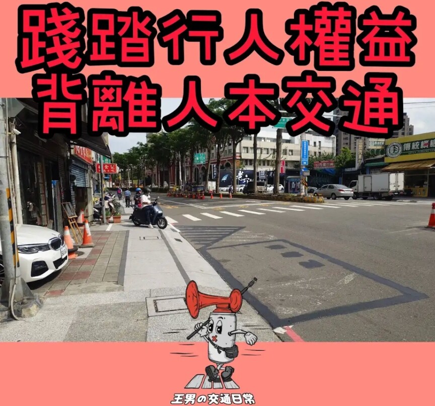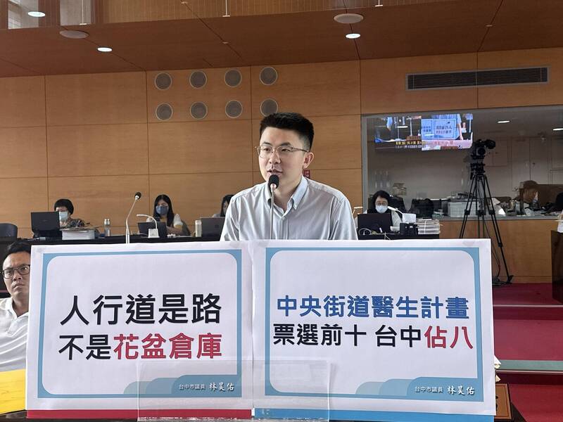 City Councillor Lin Haoyou says Taichung residents are dissatisfied with the pedestrian environment in Taichung and have taken online to vote and voice their dissatisfaction.
