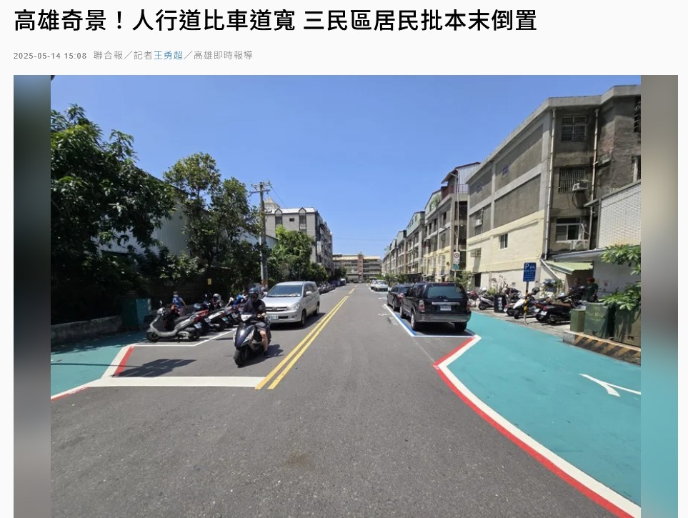 Some local residents in Kaoshiung just can’t understand how a sidewalk can be wider than the road and complain about it. Due to the extreme width of the road that was only 1 lane each way the govt. was easily able to add in a “sidewalk” while still having plenty of room leftover for parking bays.
