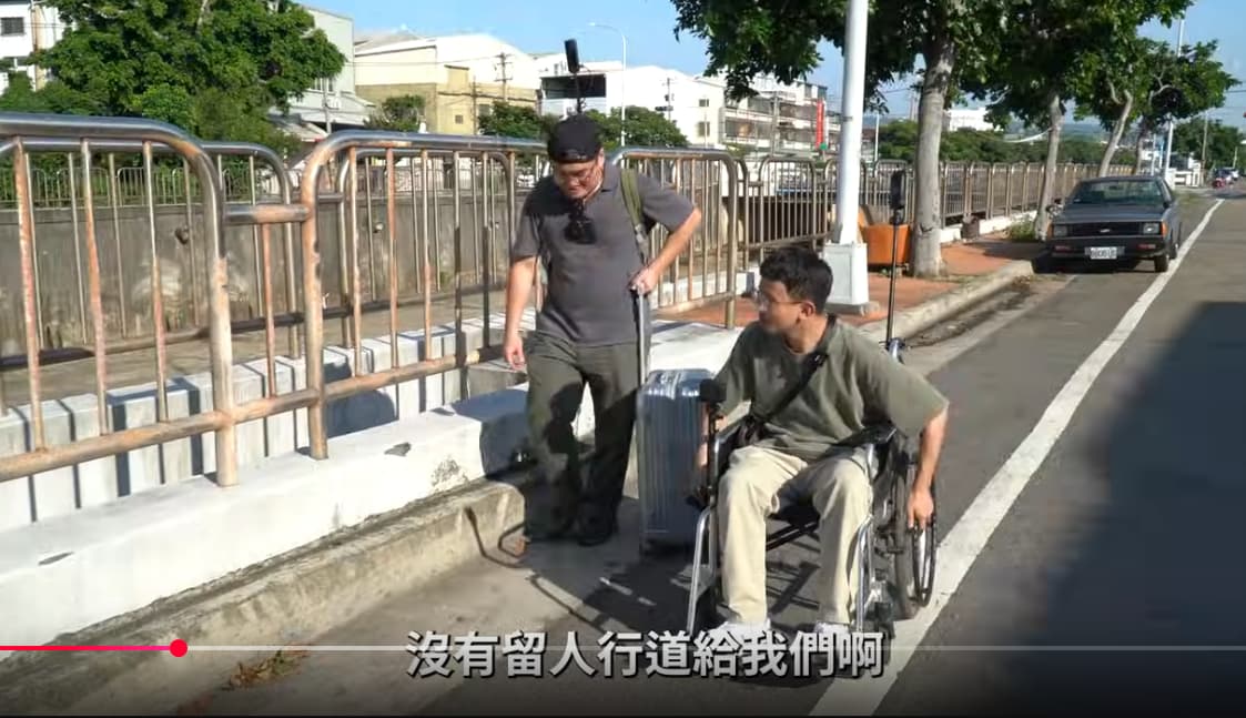 One of them barrows a wheelchair to show just how bad it is…even if you have a sidewalk. Video features YouTuber OwlFuko who some people may know given his numerous videos on pedestrian and traffic safety in Taiwan. The video starts off showing you have a massive 10 lane road and pedestrians only have 25s to cross and there are no pedestrian islands or anywhere safe to stand if you can’t make it across.
