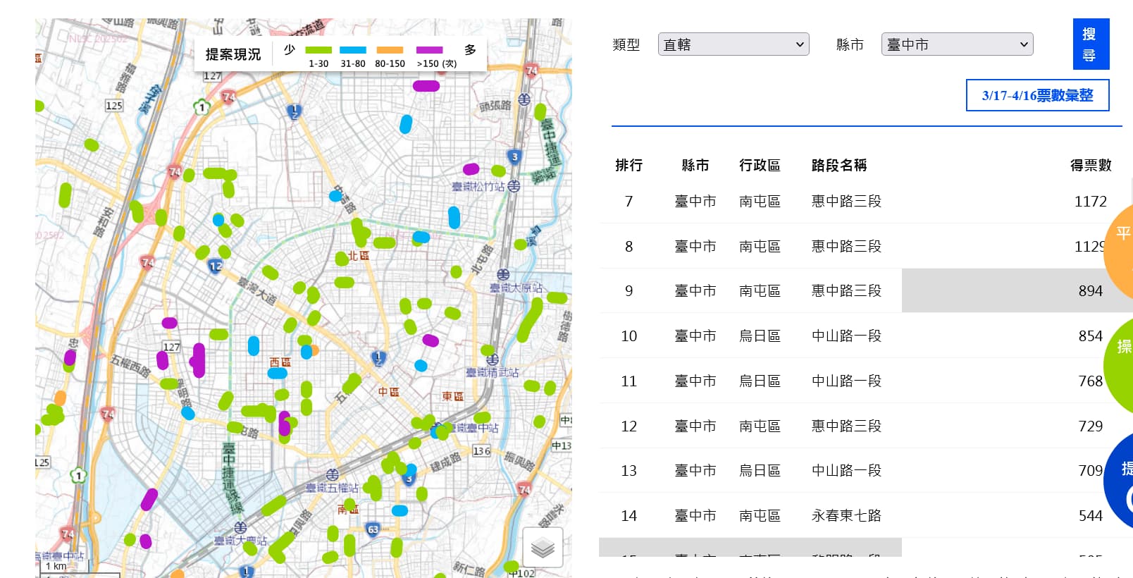It even got in the news…of the top 10 places so far across the entire country Taichung has 8 roads listed. Only 1 place in an entire city/county for a project will receive central govt. subsidies based on the voting on this platform…