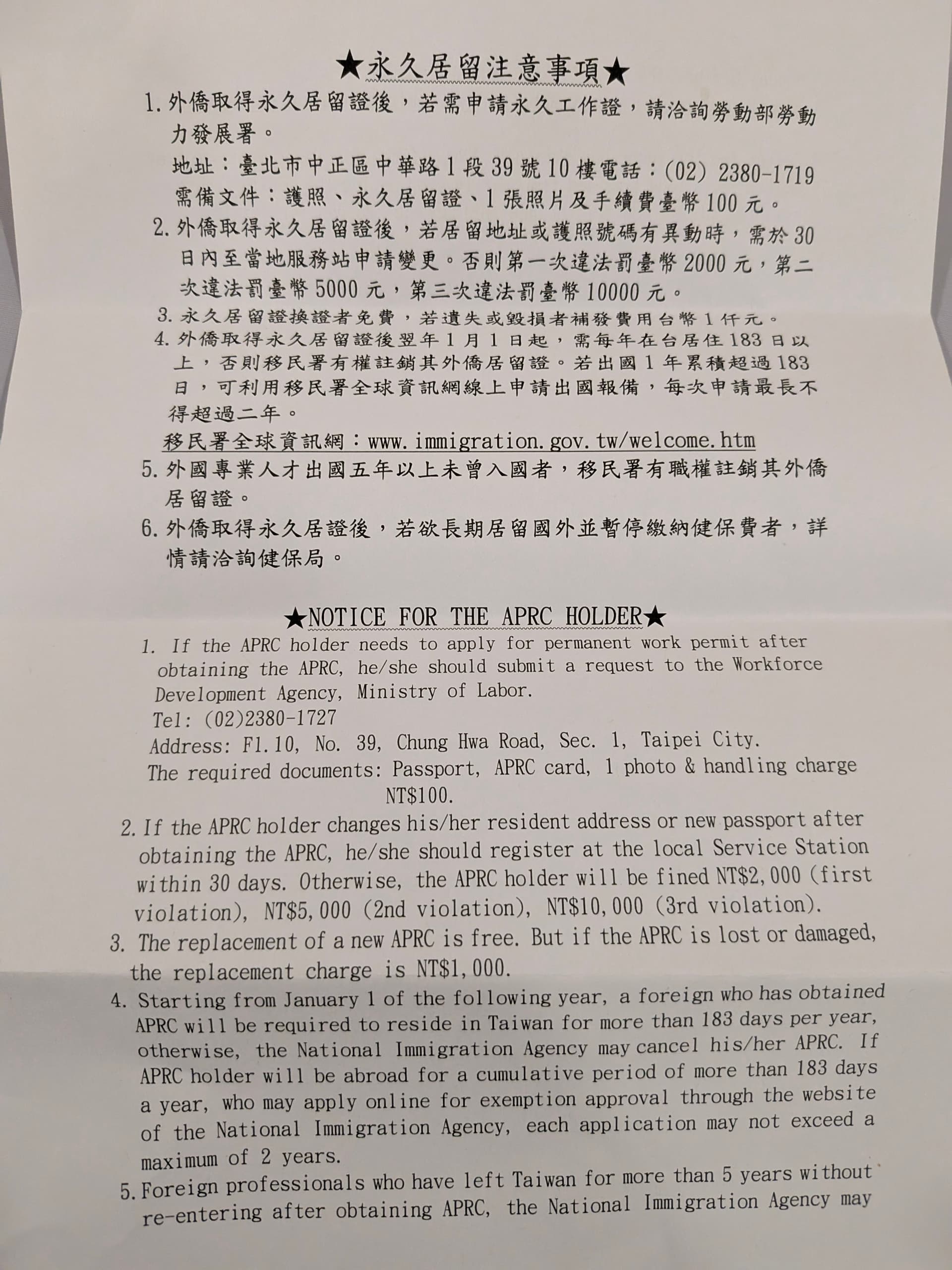 Which aprc u got? for work based aprc, u only need to be in taiwan once every 5 years.