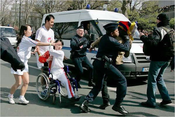 Mustn’t have been that effective at all. They had to extinguish the torch of world harmony and peace several times today… Can you see the spirit of world harmony and peace burning brightly in that torch? I can’t seem to see past the lines of police, paramilitary dudes and Chinese thug guards surrounding the peaceful, harmonious flame.[/quote]