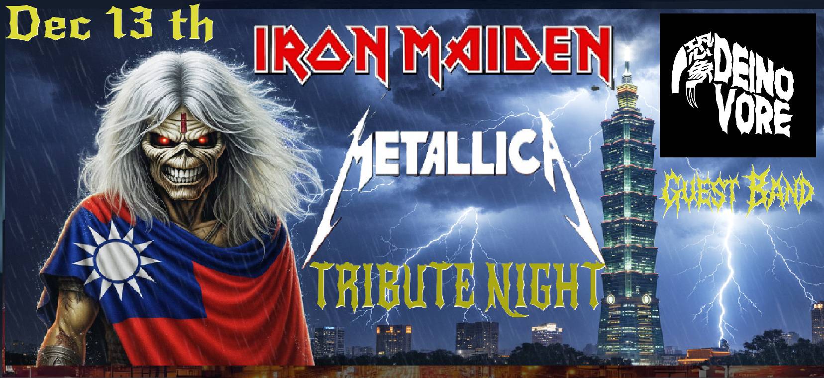 There will be a night full of heavy metal. Iron maiden and Metallica Tribute band with an amazing guest band DEINOVORE opening the show.