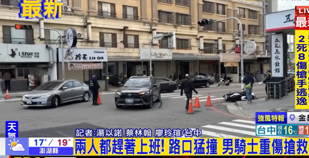 In Taichung a migrant worker going straight is killed by a left turning driver. Driver says he thinks the other guy was riding to fast and that the front end of his car already crossed over. The migrant worker collided with the vehicle and then collided with the traffic light pole.