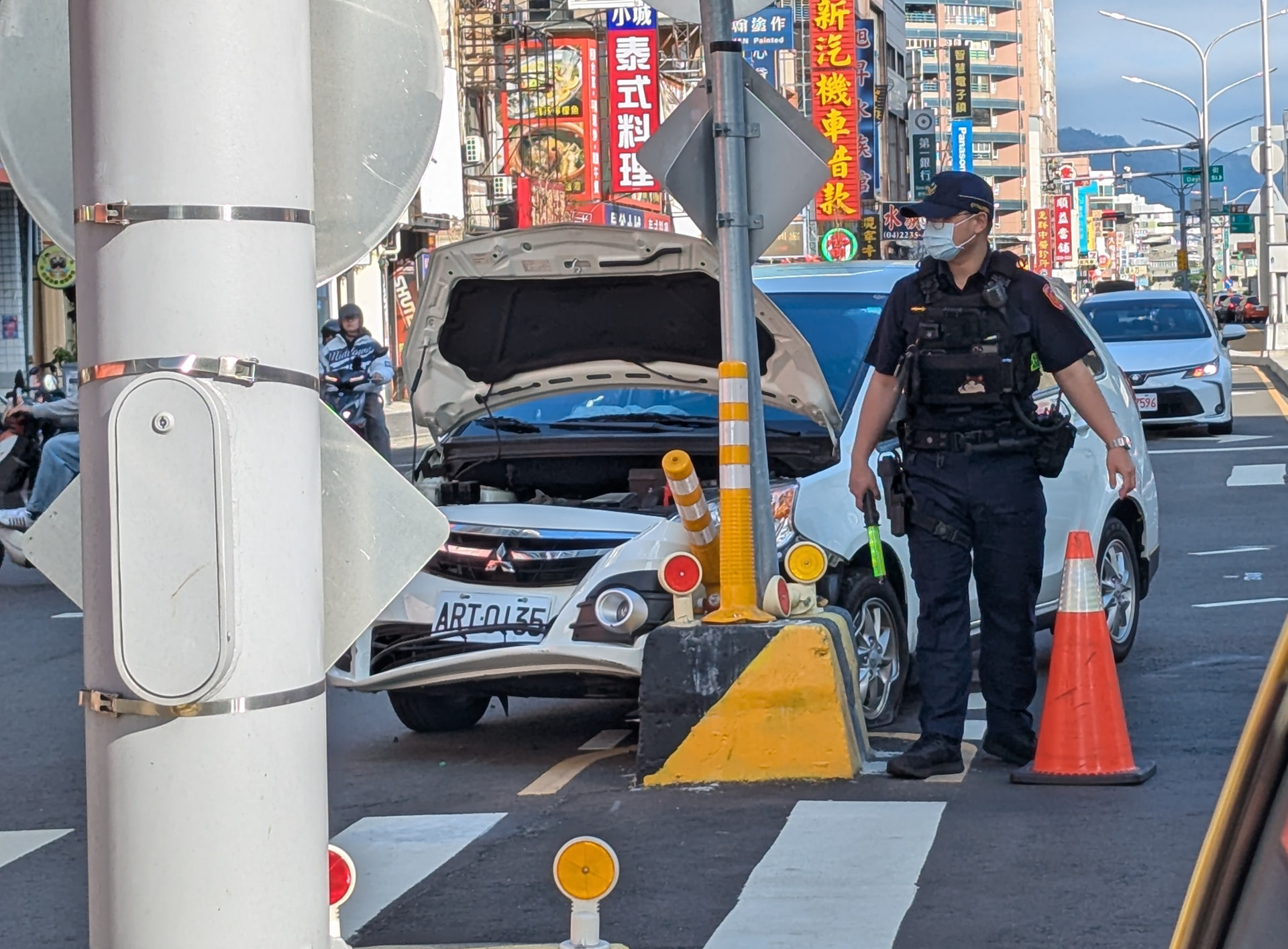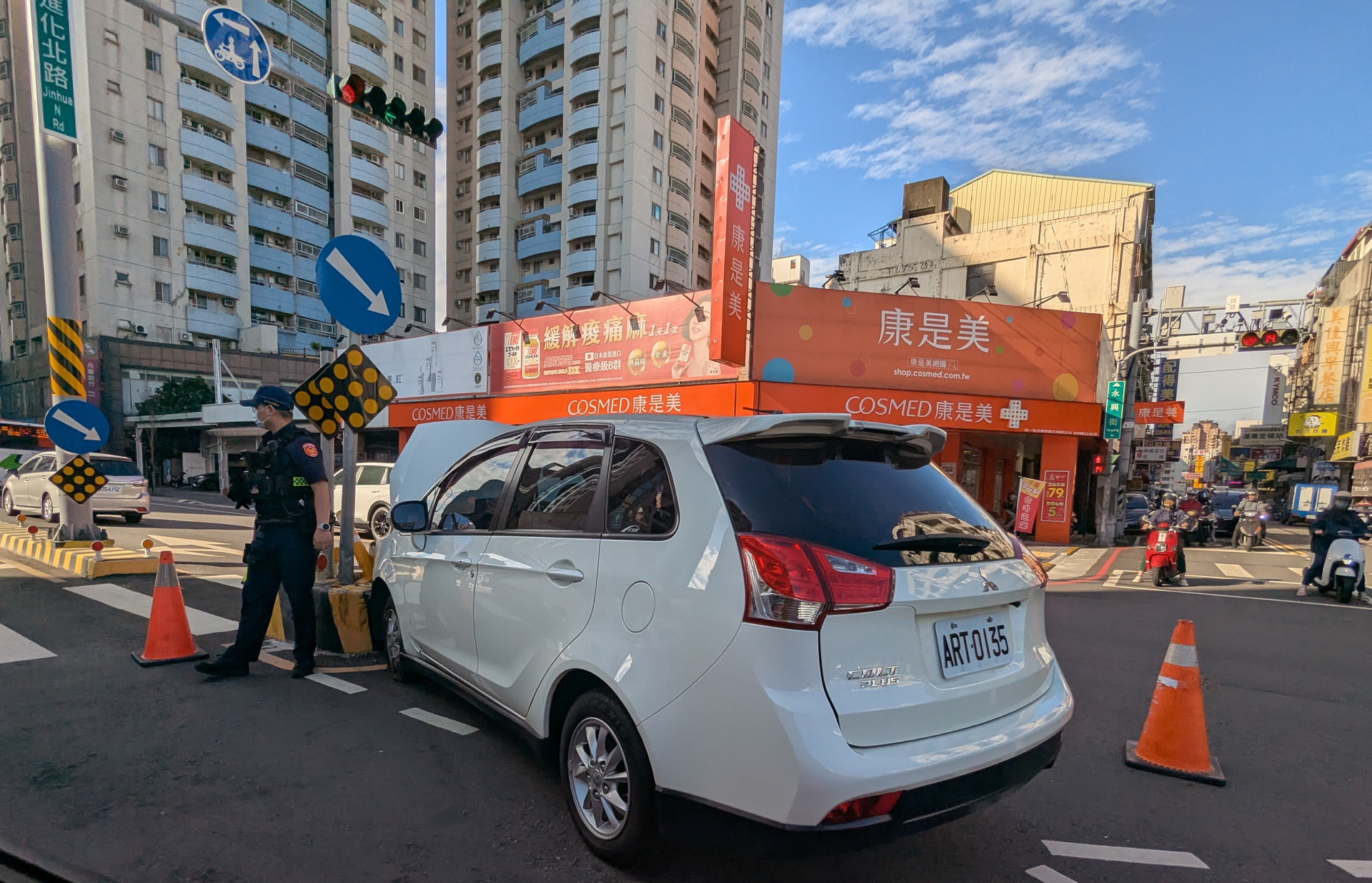 On a similar note in Taichung I often see fast food drive through lines or shopping center parking entrances backed up so much that cars are waiting in line on the road. And police are fine with it!