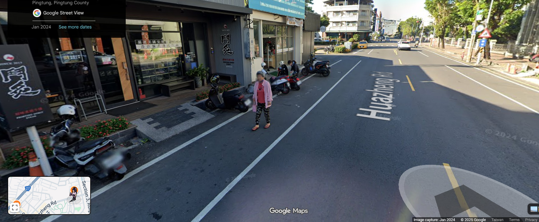Along this road there is a school and a park. Like a significant number of roads in Taiwan it’s a 4 lane road that in reality only functions as a two lane road since the outer lane is full of illegal obstructions and illegally parked vehicles and the police and local govt. do nothing. Could easily convert the road into two lanes and having an additional left turn lane at the intersection and put in sidewalks while still keeping roadside parking bays.