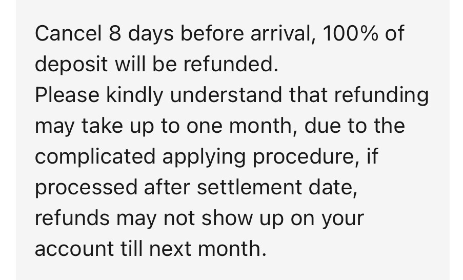 What I’ve only experienced in Taiwan so far, though, is that even when booking with free cancellation, some places will charge a deposit way before the end of the free cancellation period.