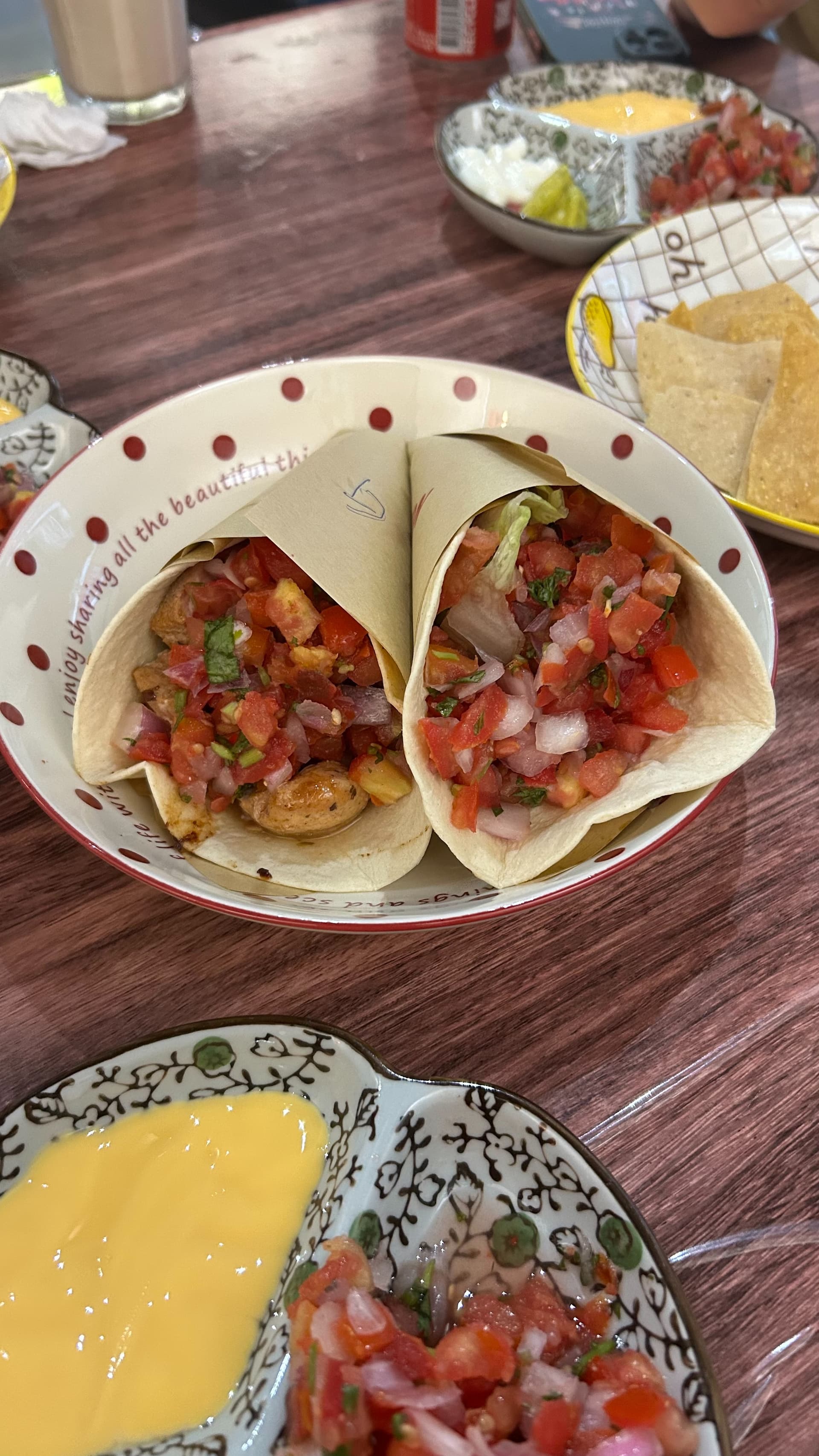 Don’t expect anything fancy. It’s Mexican-ish, Chipotle-ish, with a simple menu: tacos (soft, flour), burritos, quesadillas, nachos. Based on my one visit so far, it’s very good for what it is. Also, it’s notably clean.