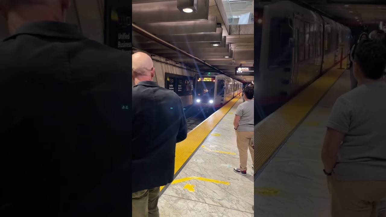 SF giants fans headed out to the stadium with muni at Embarcadero tonight
