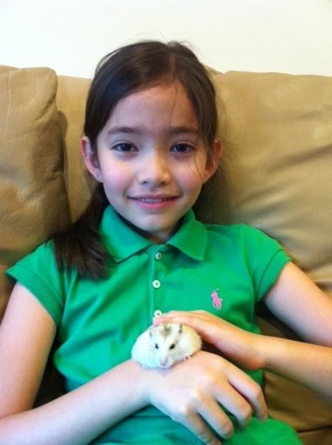Of course, we’d prefer a dog or cat, but we don’t have the time or space for such animals and, besides this is a good introduction to furry animals. Maybe if she passes this test, which she’s doing, some day we might move up the pyramid.