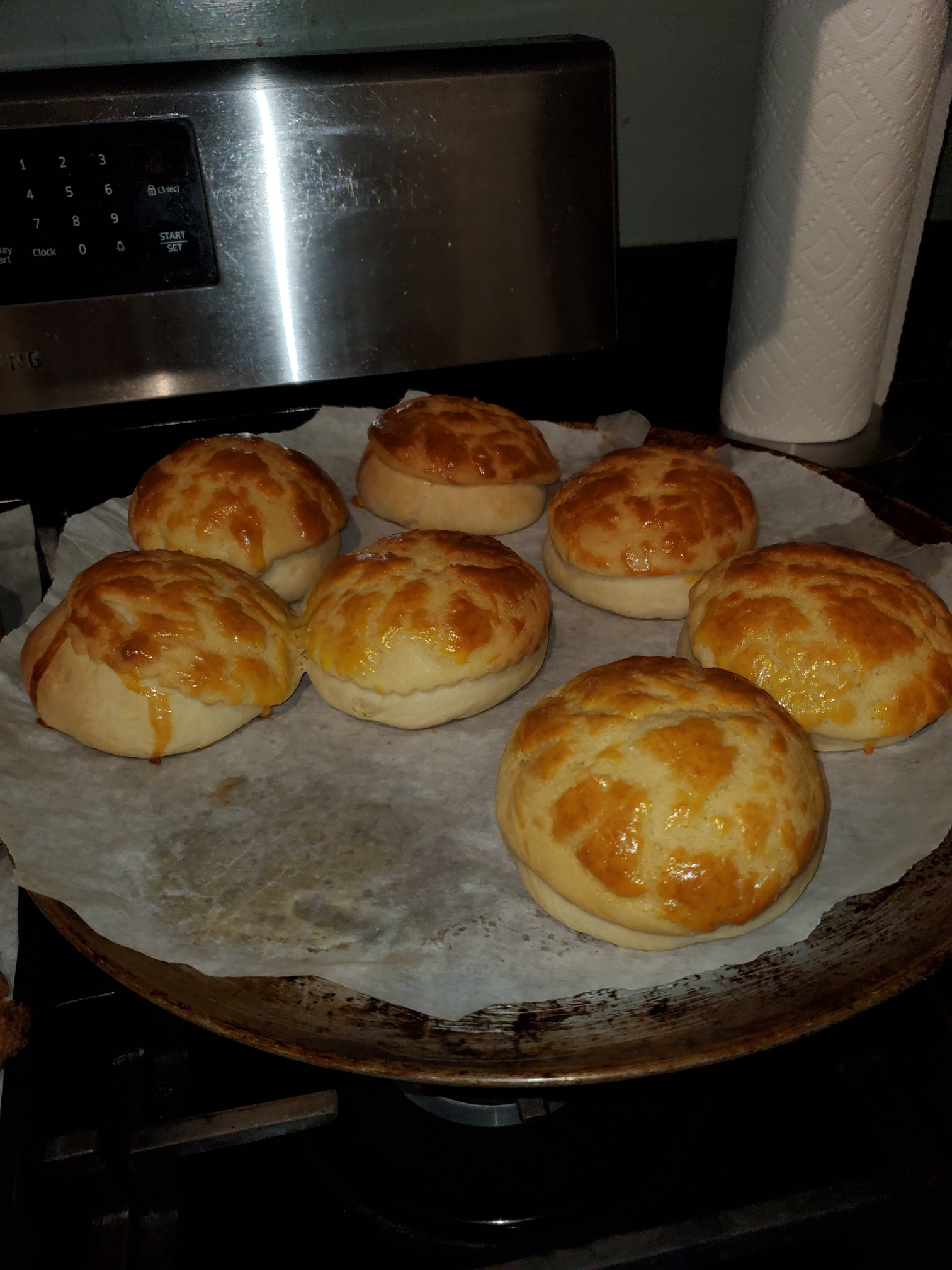 This is a rare item in the USA. Its suppossed to be Taiwanese pineapple bread . There is actually no pineapple in it but it still tastes pineapplely. I just made this batch. It will last a day.