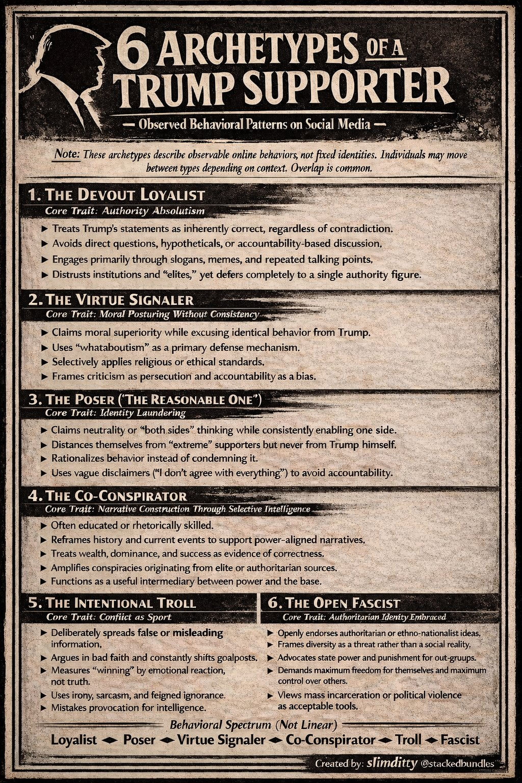 Just for clarity, sorry. But I want to know your actual point. Are you saying we don’t need to look at Trump, but rather his followers (more or less, the republican sphere)? Perhaps we can say he is just one voice, to avoid the cringe obvious mental health issues, like we do with biden…are you saying the American people support the stuff he says and influences?