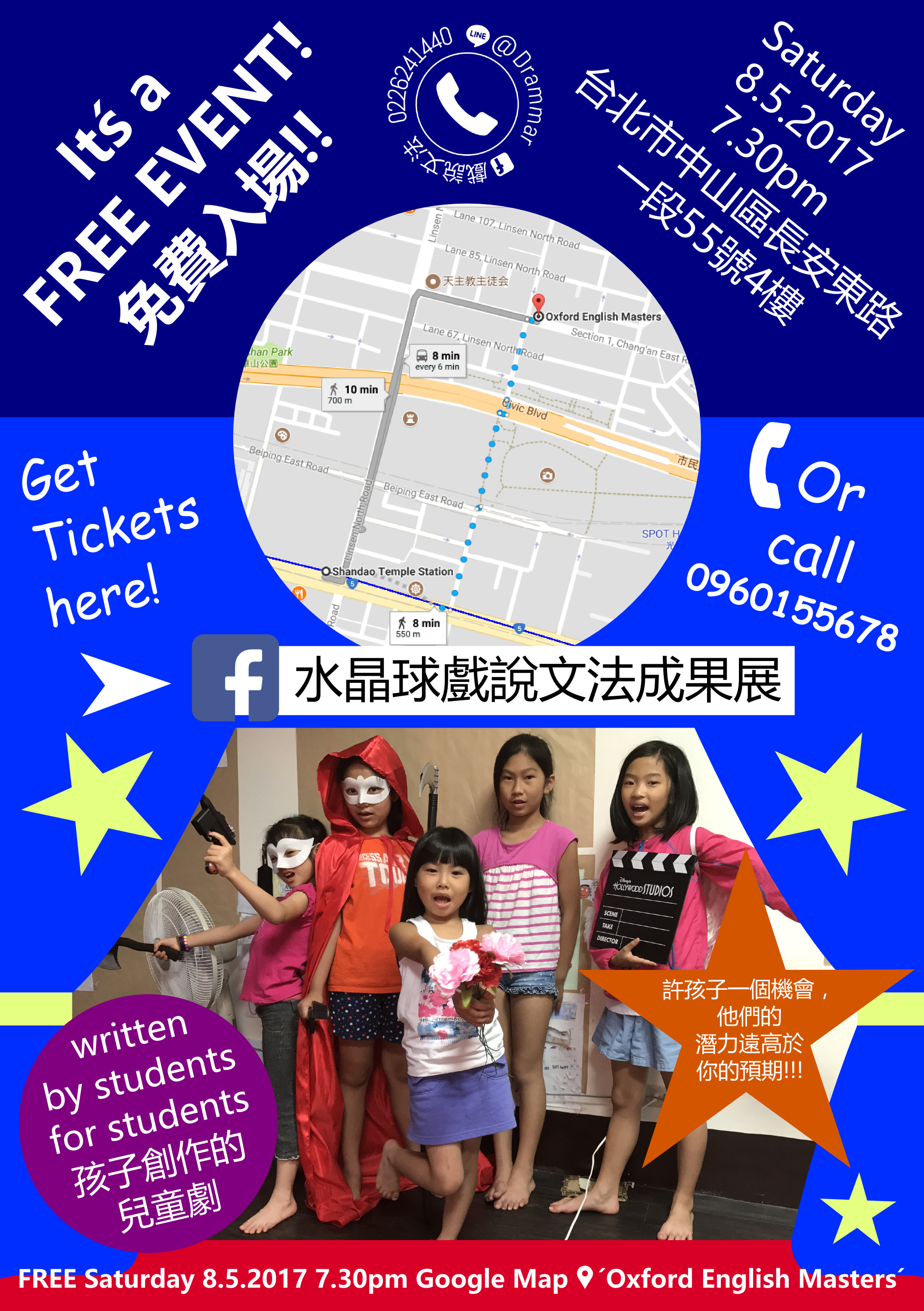 Audiences will get to judge for themselves whether Matt’s coaching can indeed help young students develop great stories. The play ‘Crystal Ball’ will premiere on Saturday 6th August at 7.30pm at 台北市中山區長安東路一段55號4樓 for one performance only. It’s an original children’s fairy-tale written by students for students, and is a family show that should appeal to the Frozen-loving crowd and those with a love of Star Wars and other fables alike! Tickets are free, and you can register online by attending on the Facebook Event Page 水晶球戲說文法成果展. The Taipei Fringe Festival is kicking off soon after on 8.20.2017 so there will be plenty of chances to sample more of Taiwan’s creativity in the week’s ahead!