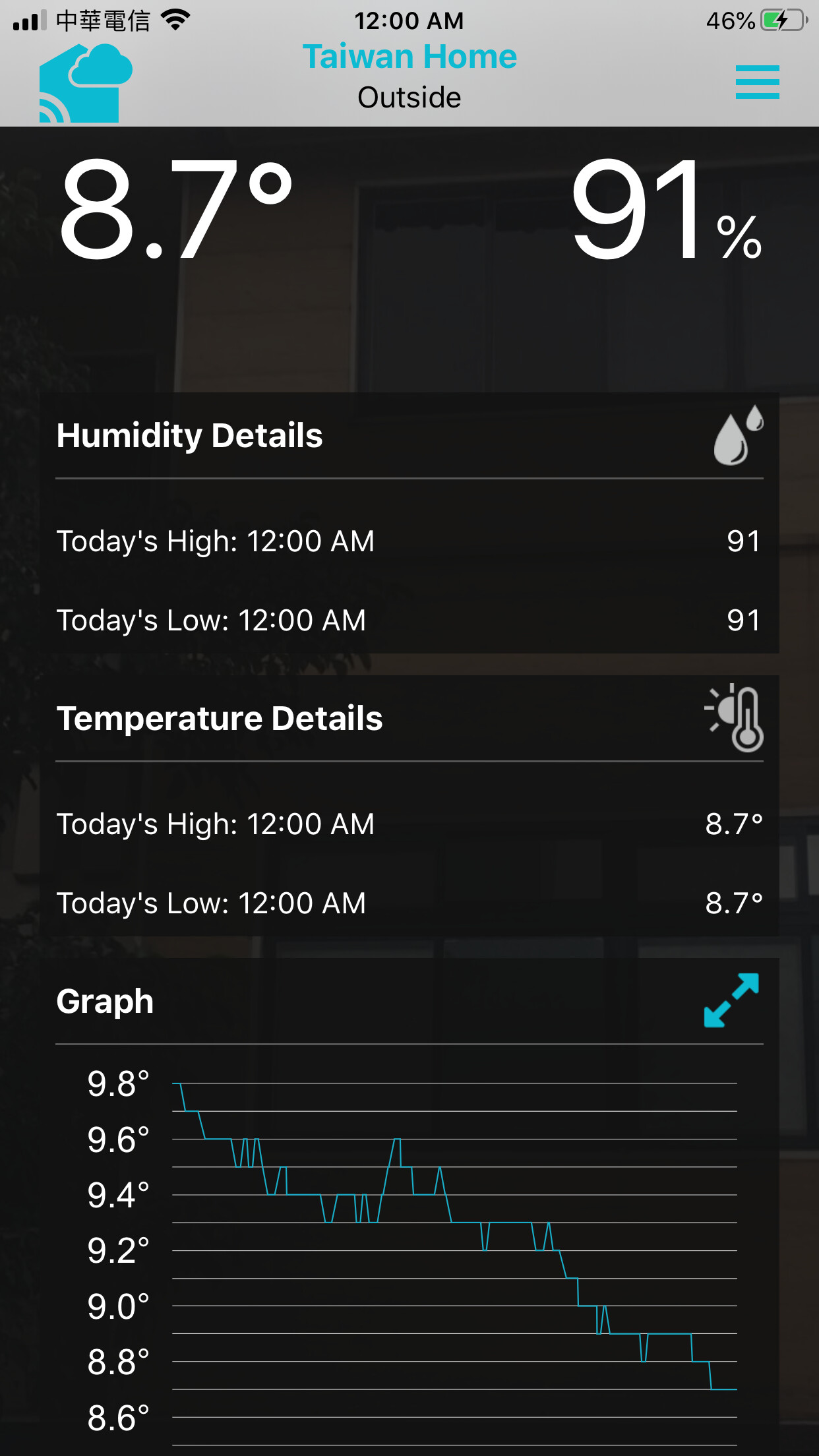 Still raining with low clouds, so temp is still relatively higher than it would be if it were dry with clear skies.