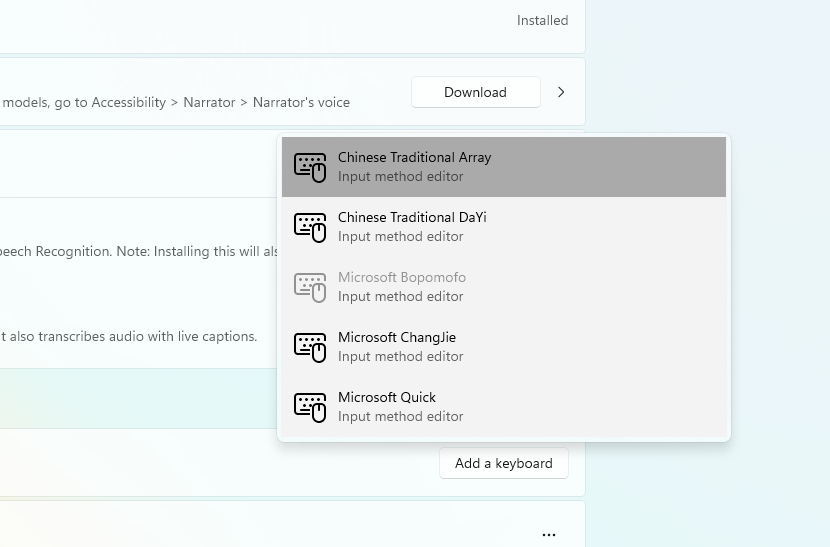 The Scroll down to “Chinese (Traditional, Taiwan)”, and select “New Phonetic” (this took a little trial and error to find the right one) and press “OK”