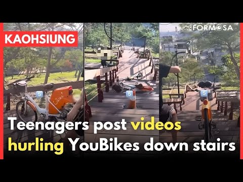 A group of teenagers in Kaohsiung is getting flack online after posting videos on social media hurling YouBikes down the stairs. The teens are being slammed for vandalizing public property, and the YouBike company says it will seek compensation for the damages. The school of two of the students has apologized on their behalf, saying it will intervene in the matter.