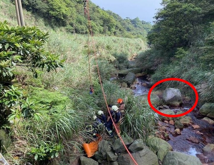 An American cyclist broke his leg after he fell 4 meters into a ravine in New Taipei City.