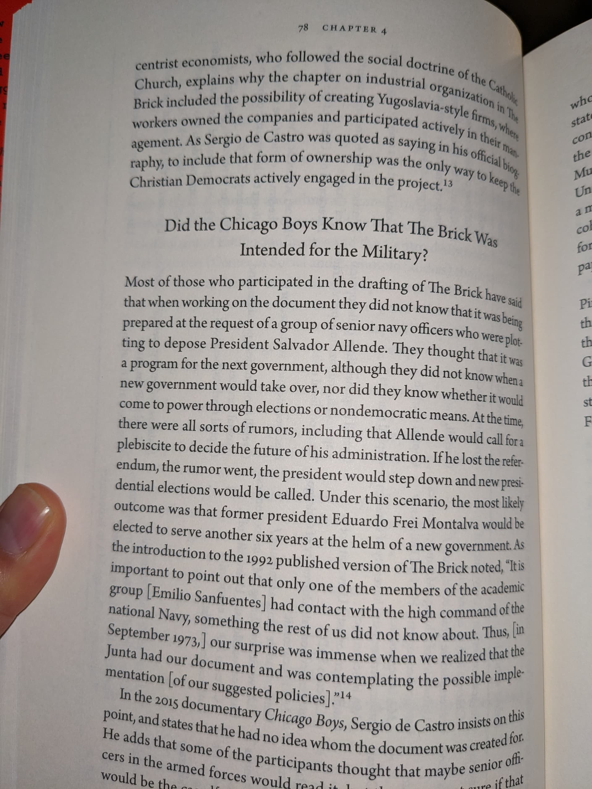 The Chicago Boys wrote a list of economic policy recommendations called El ladrillo, the Brick, cecause it had so many pages it was heavy like a brick.