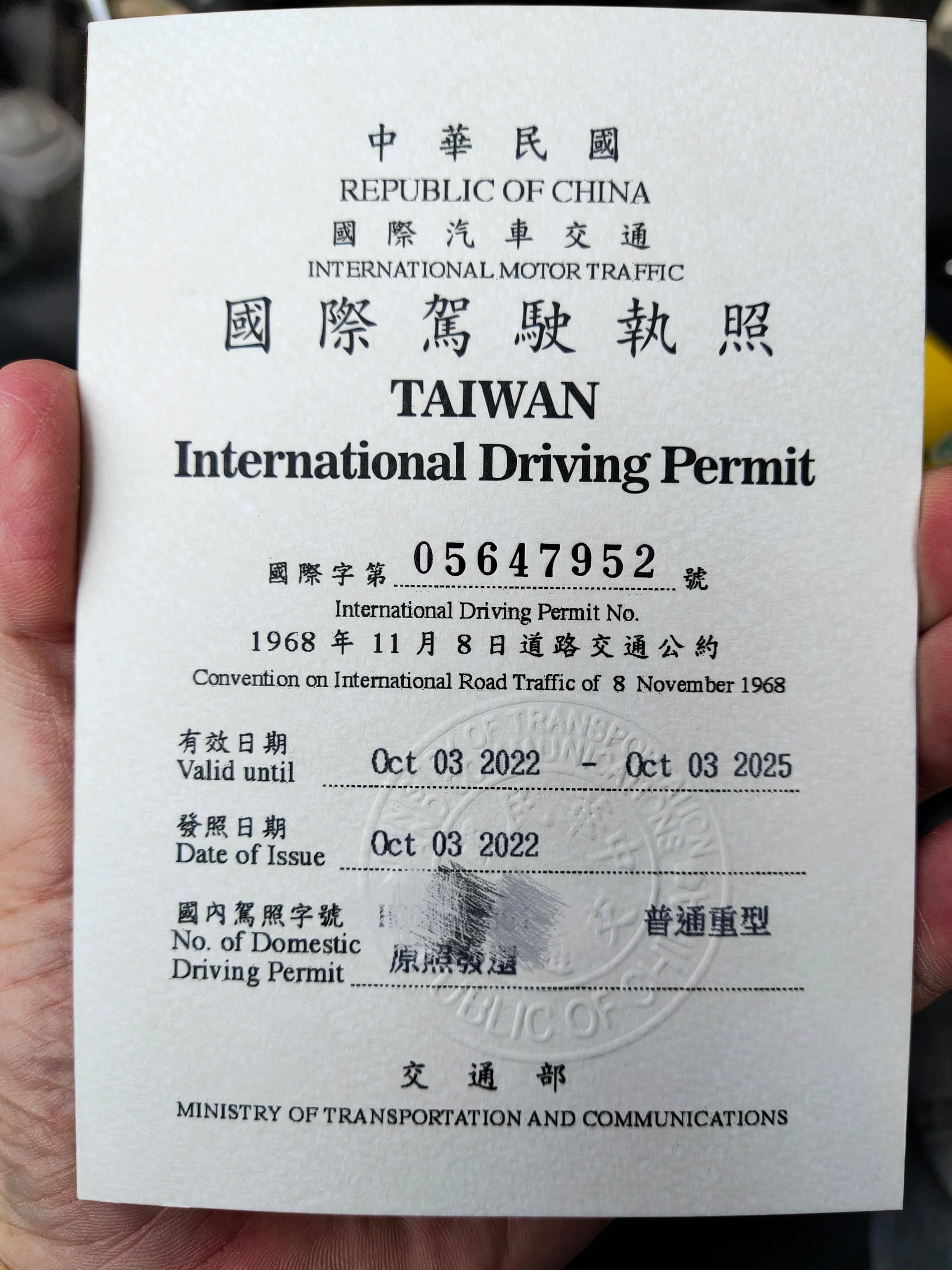 My Taiwan IDP is good for the US, but it’s for scooters/motorcycles only (Class A, specifically <400kg) because that’s the only Taiwanese license I have.
