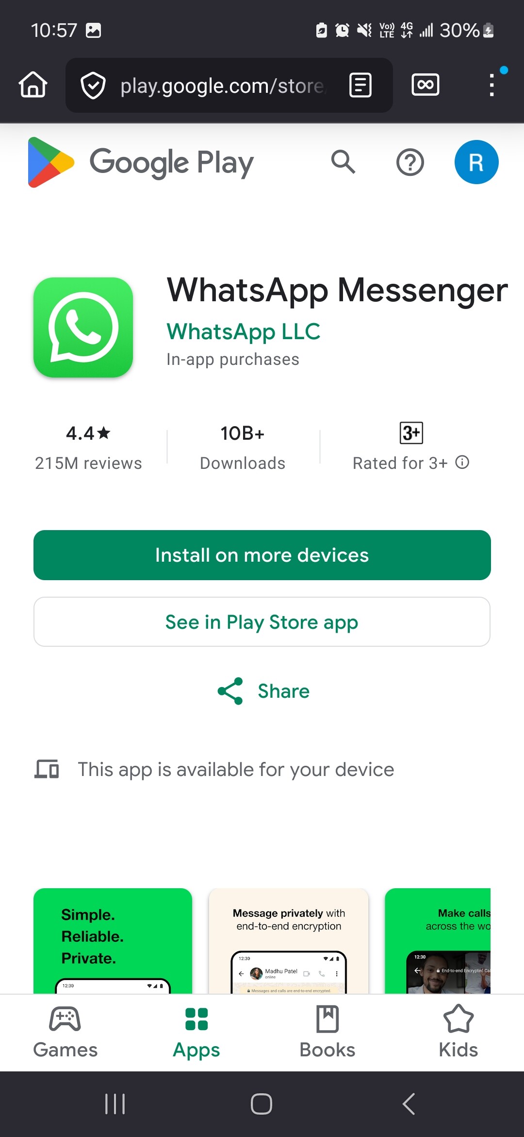 Open your play store app directly and search for whatsapp and install or update it. It looks like you’re going through the Google play website to access the Play store, which is not working for you for some reason.