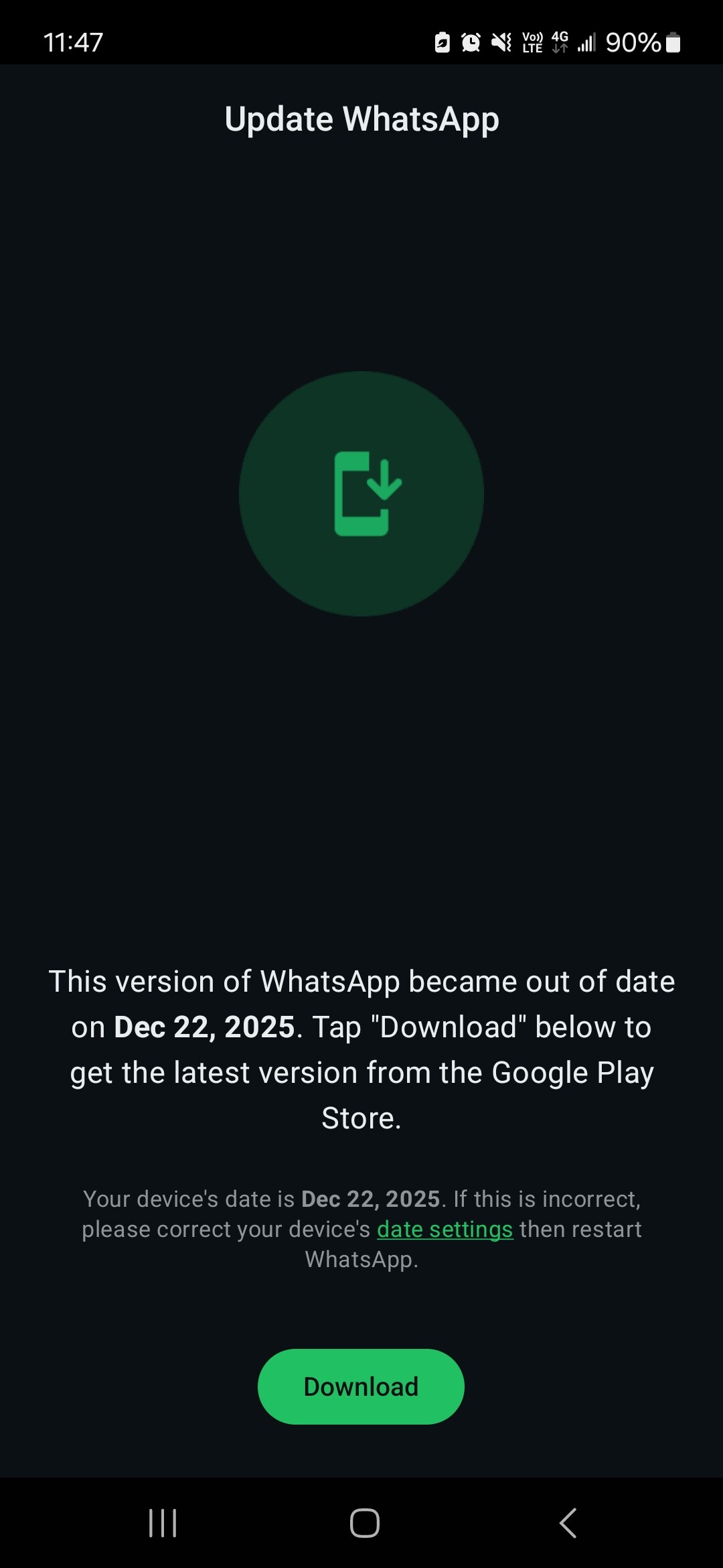 I tried changing the date on my phone, and whatsapp said the date is wrong, change it back. So that won’t work.