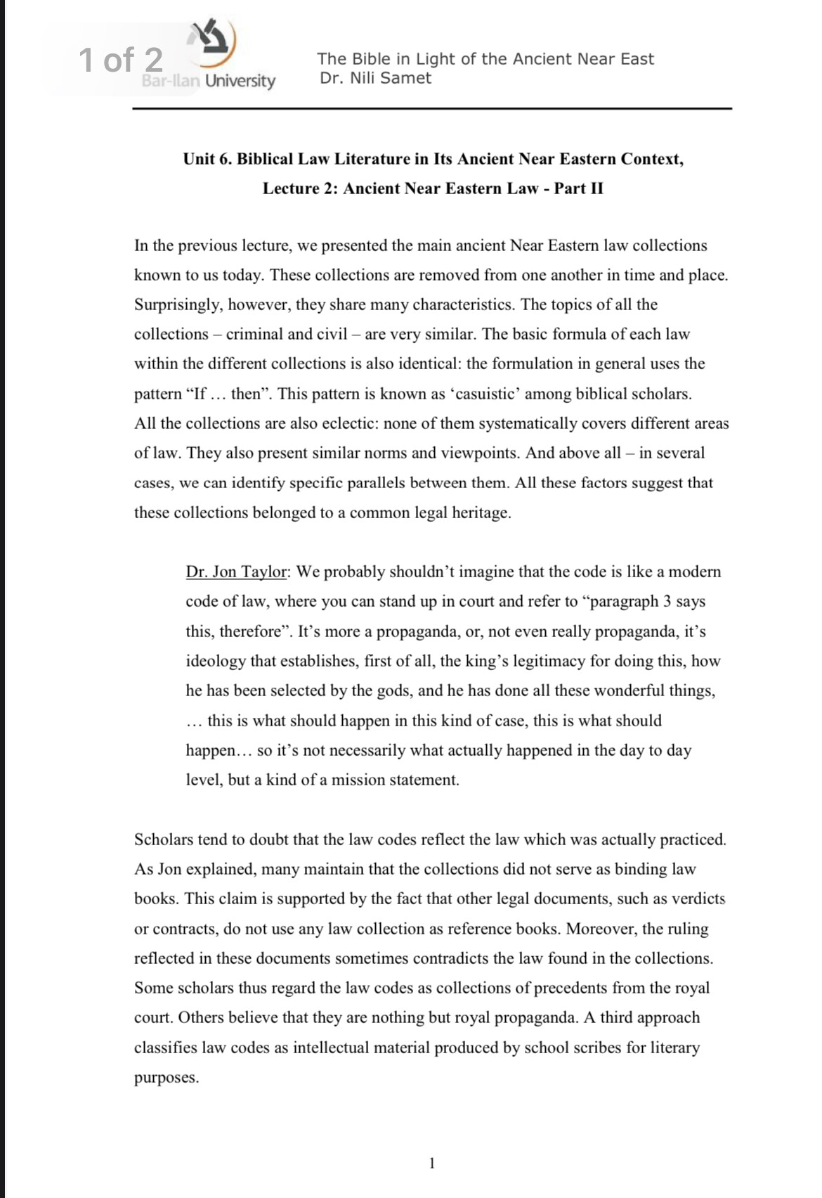 Most scholars believe those ancient near eastern laws weren’t real laws, intended only for boosting the king’s prestige. There’s no mention of them in contracts.